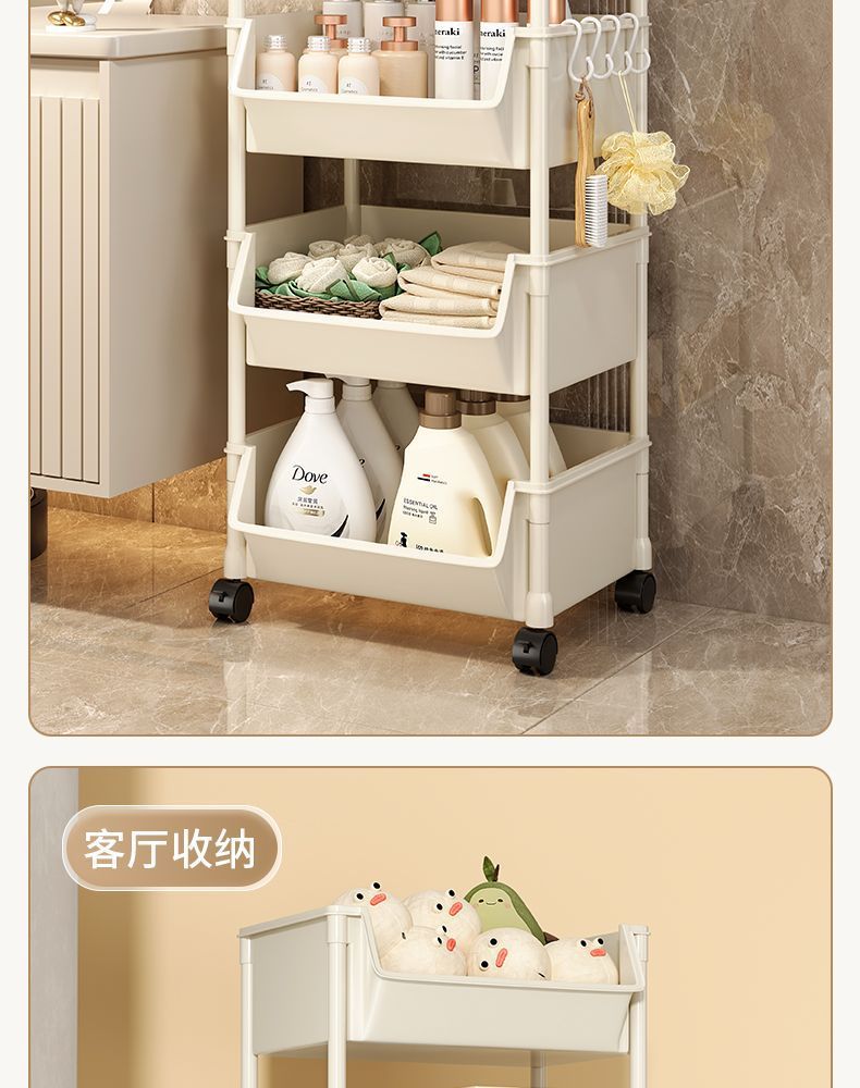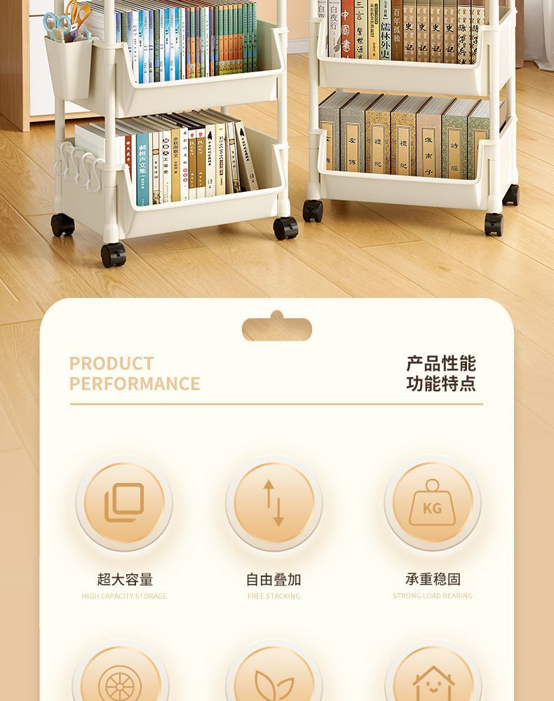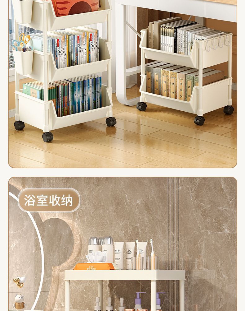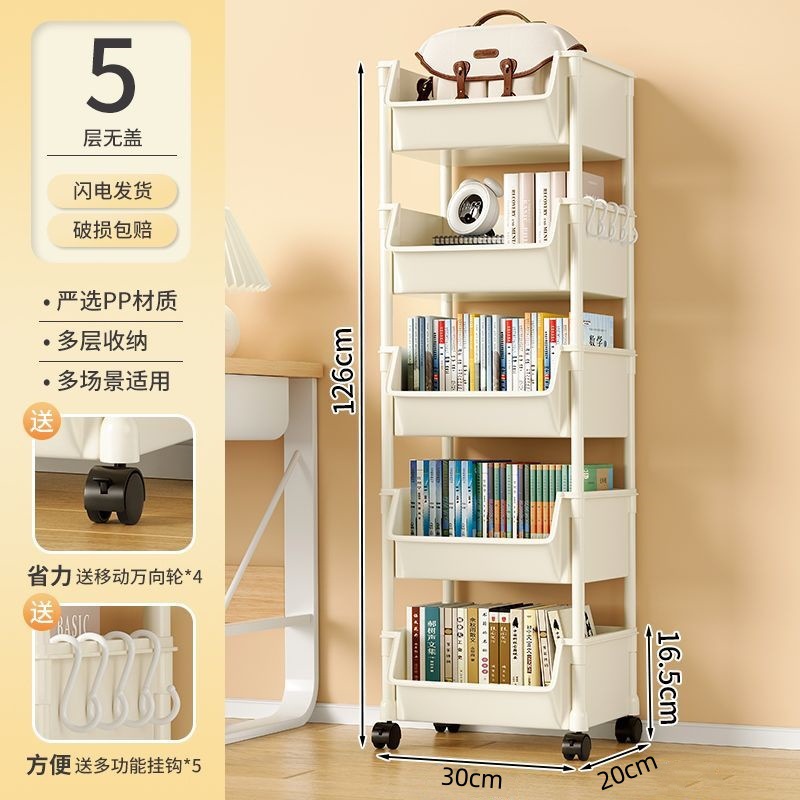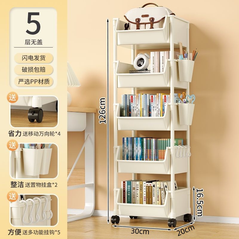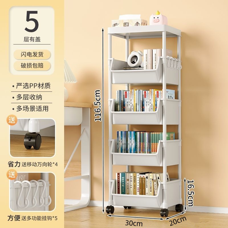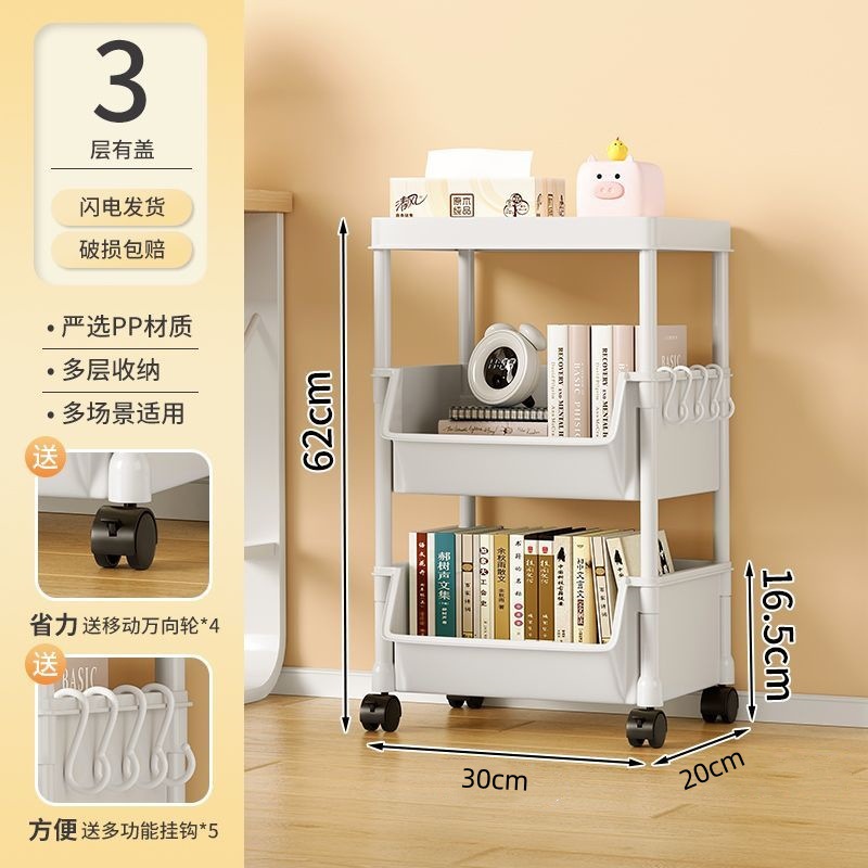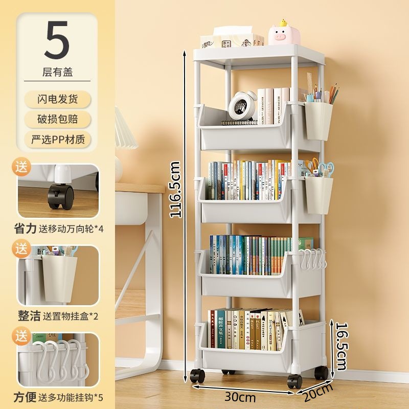 책장 수납 선반 가정용 다층 책상 옆 수납장 거실 간식 잡화 트롤리 다기능 회전형