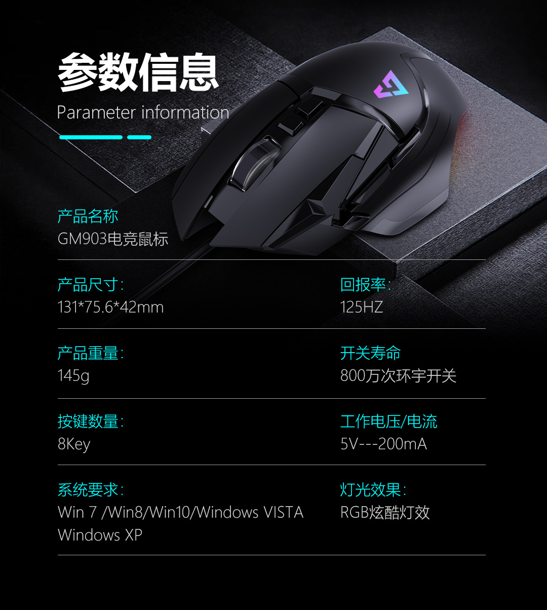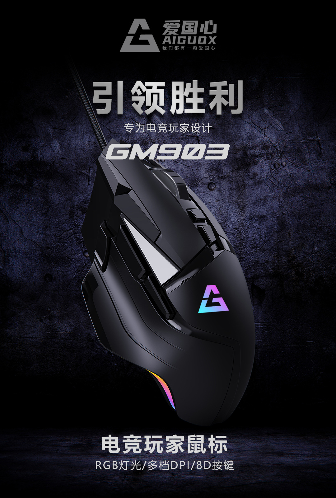 애국 GM903 유선 마우스 RGB 발광 게임 매크로 전자 스포츠 마우스 컴퓨터 사무실 액세서리 국경스토어 가기