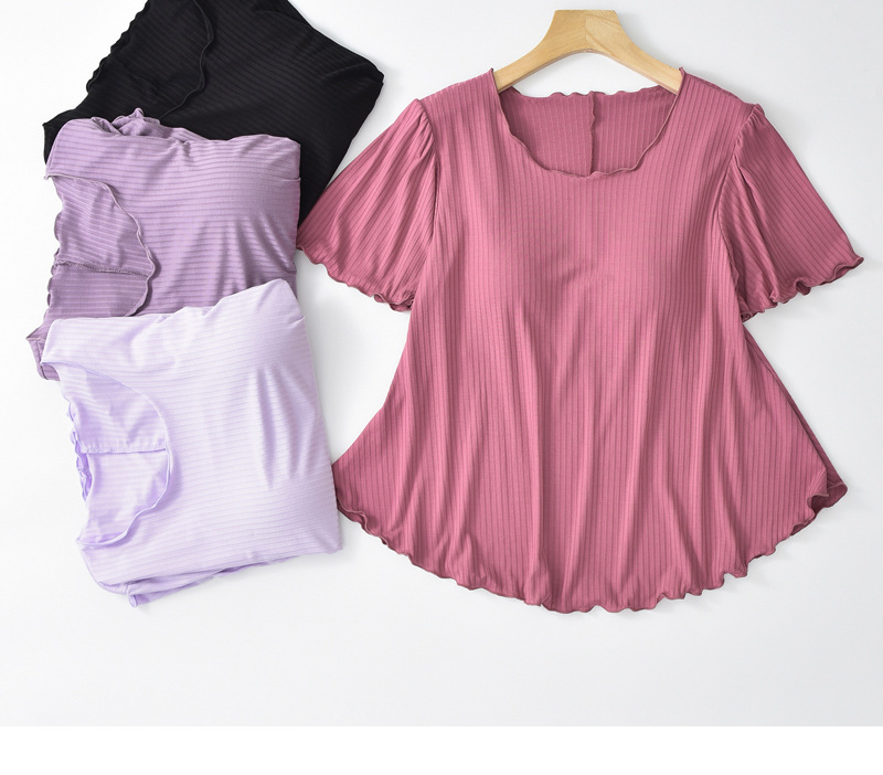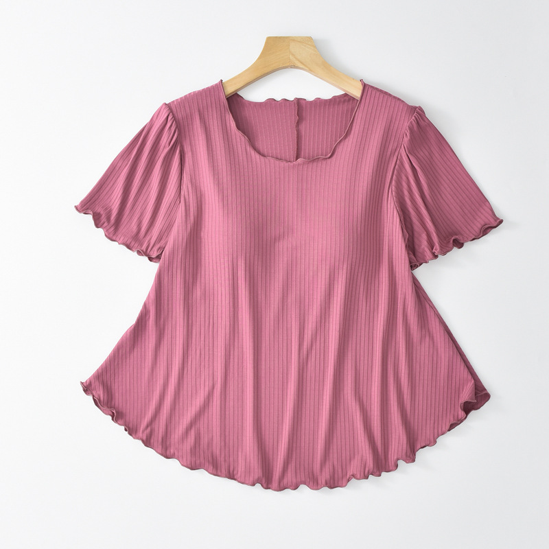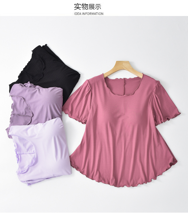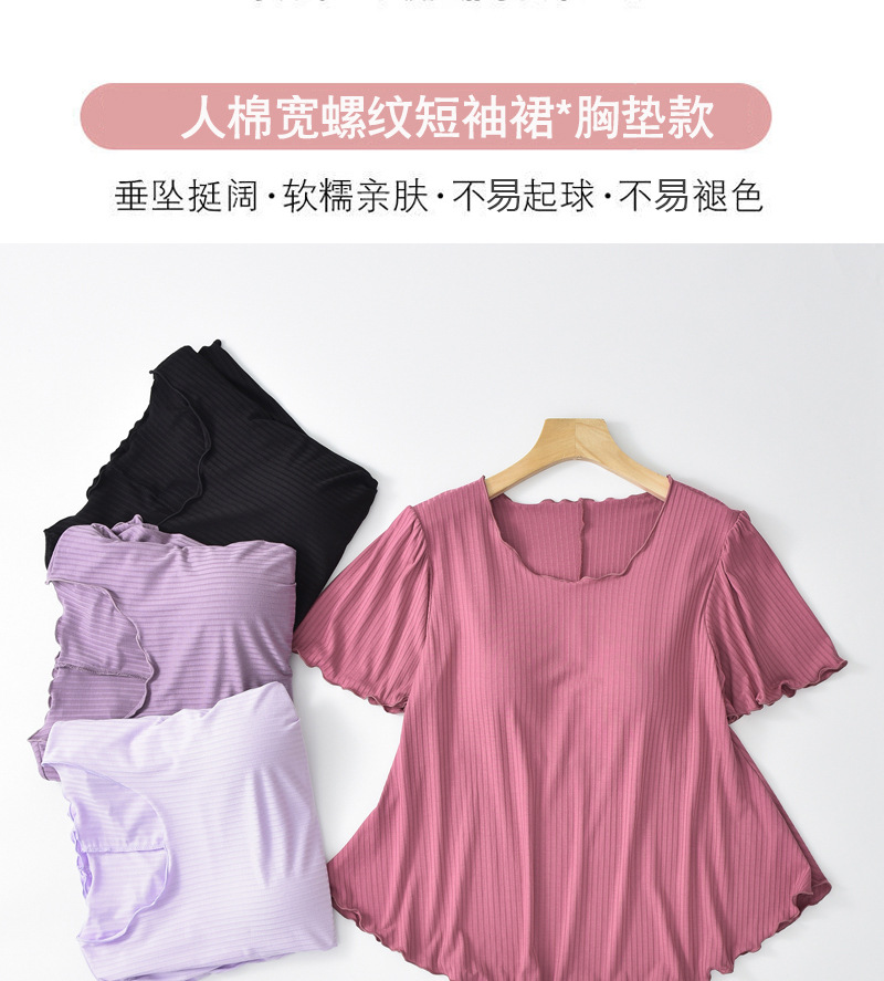 가슴 패드로 코튼 반팔 느슨한 배꼽 슬리밍 플러스 웨이트 플러스 사이즈 겉옷 홈 의류 여름 얇은 편안한 여성용 잠옷