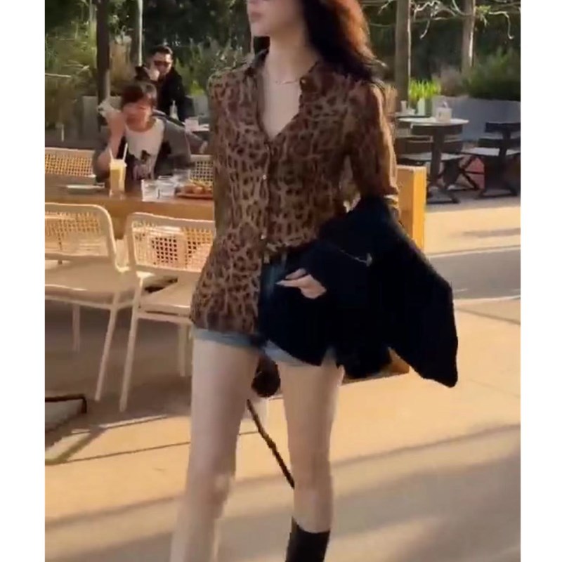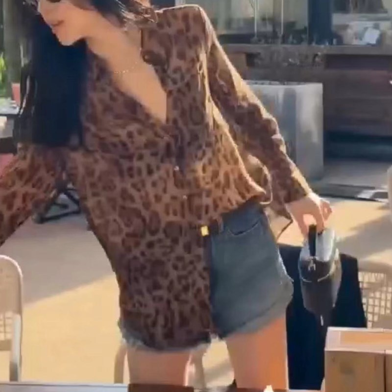 2492 Daai Mei Yiyuan 2025 봄 여름 신작 레오파드 프린트 라펠 셔츠, 여성용 세련된 긴팔 연령 감소 슬리밍 셔츠스토어 가기