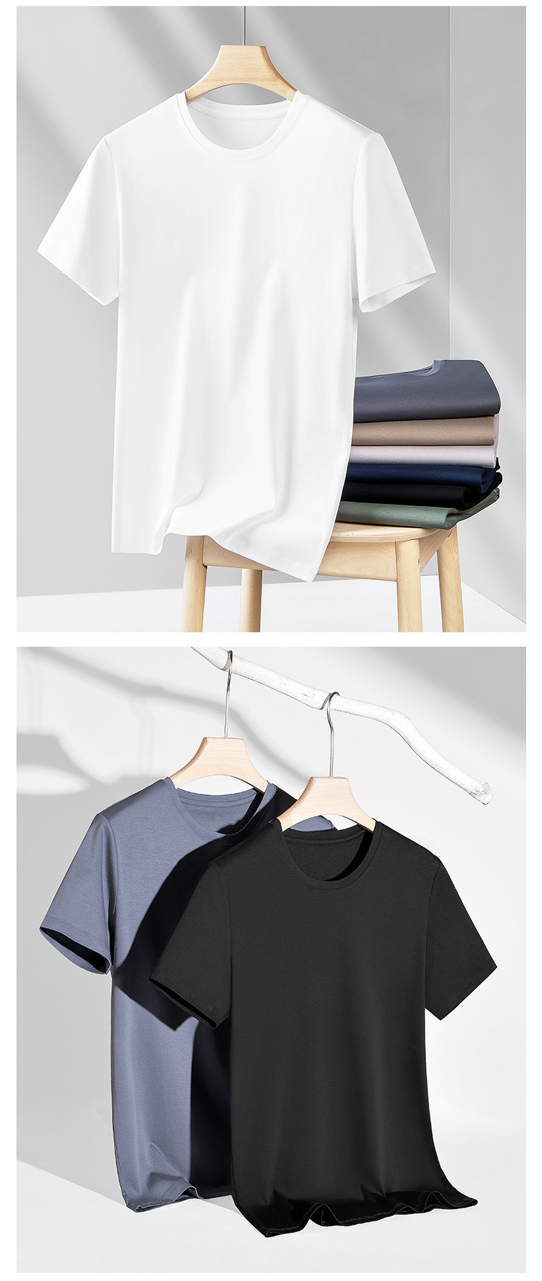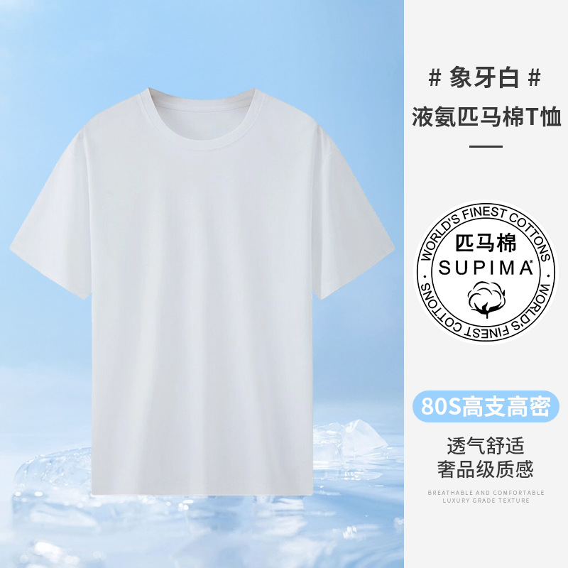 여름 라이트 북 하이 엔드 말 코튼 반팔 남성 티셔츠 화이트 라운드 넥 코튼 슬림 핏 올매치 베이스 셔츠스토어 가기