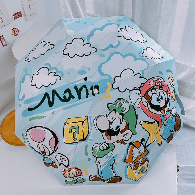 슈퍼 마리오 마리오 완전 자동 태양 우산 태양 우산 접이식 비닐 태양 보호 UV 보호스토어 가기