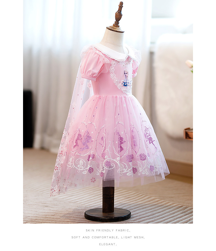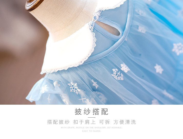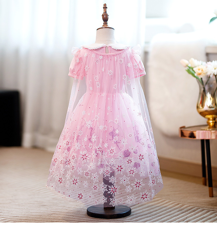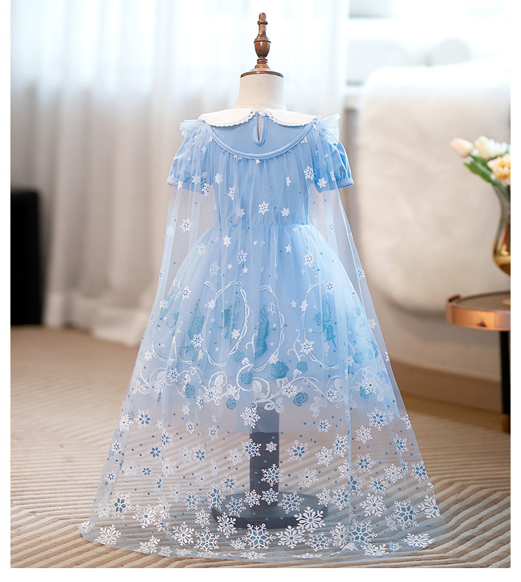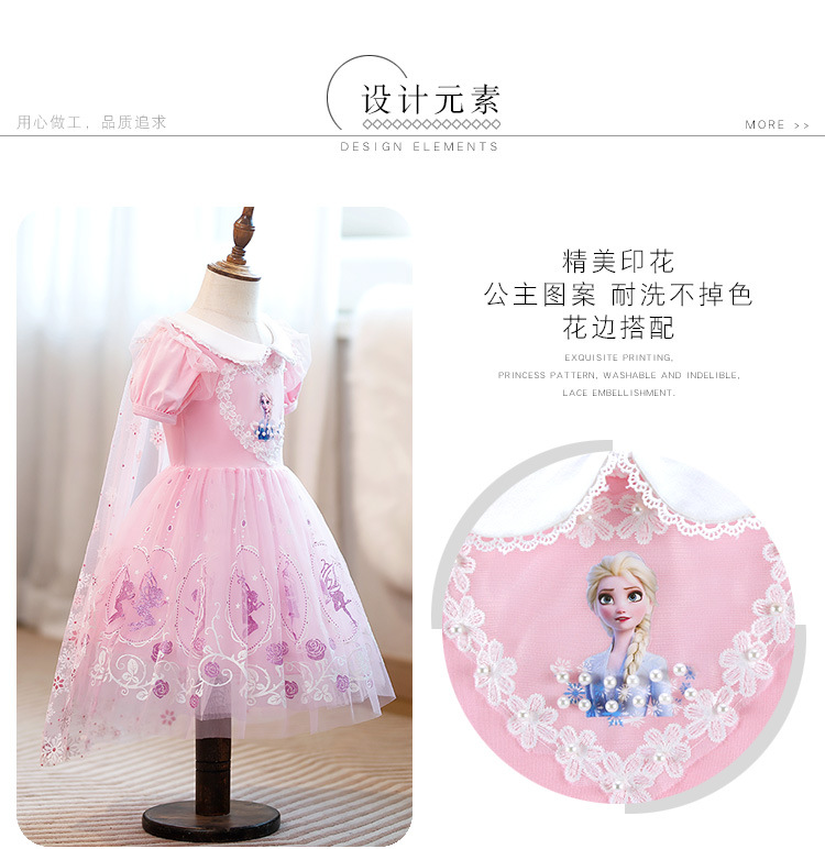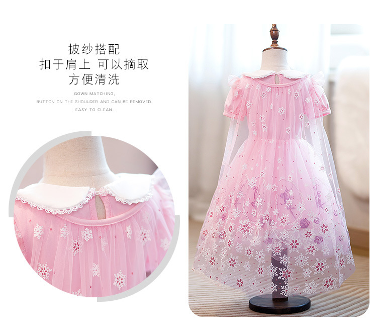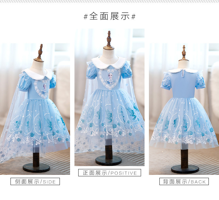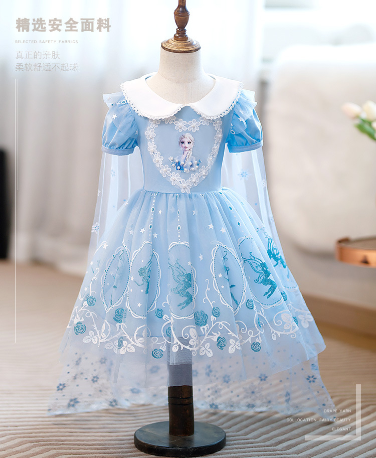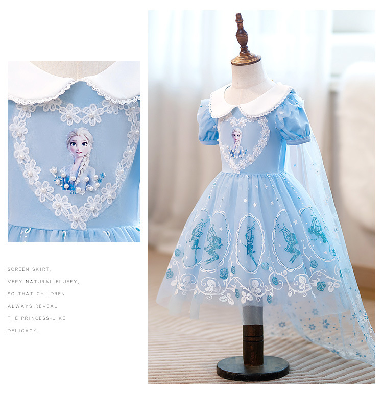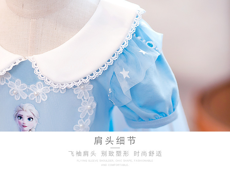 냉동 아이샤 공주 원피스 소녀 새로운 짧은 소매 원피스 아이샤 원피스 어린이 여름 아기 원피스