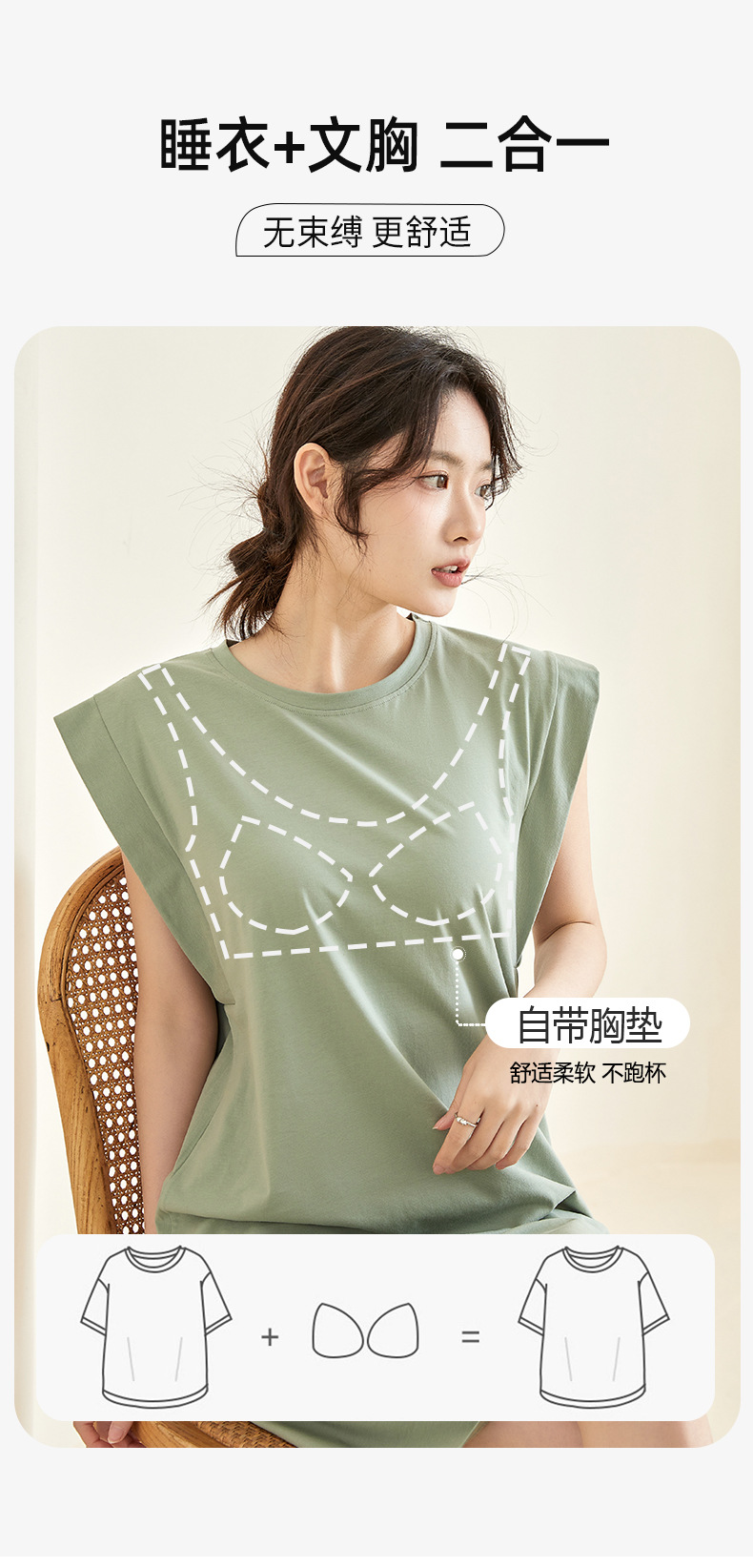 0904 아이스 도자기 면 소재 여성용 여름 잠옷, 아이스 실크 패드가 있는 민소매 홈웨어, 얇은 스타일의 슬립 잠옷, 신상품스토어 가기