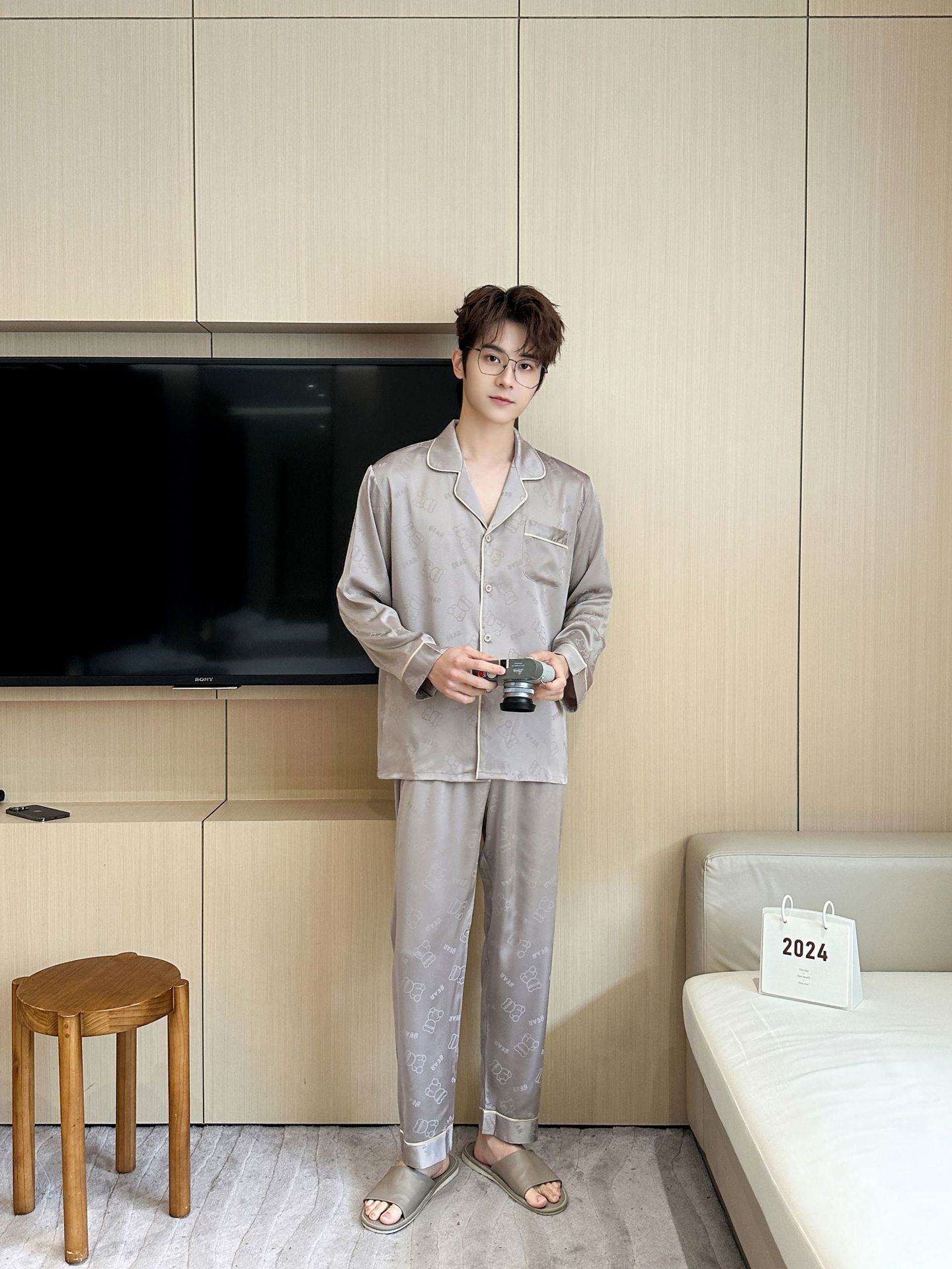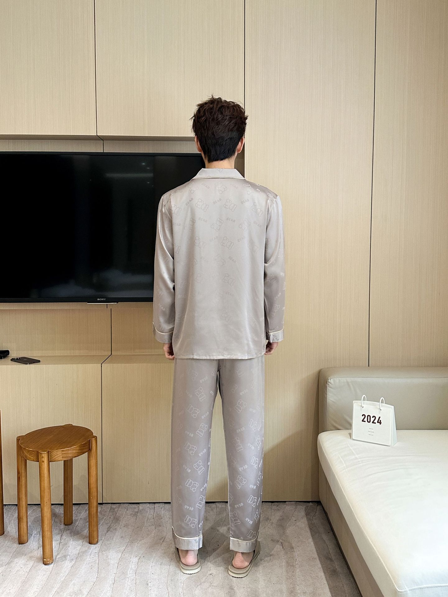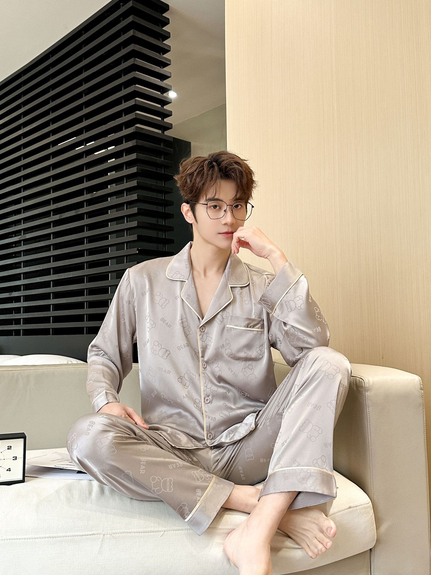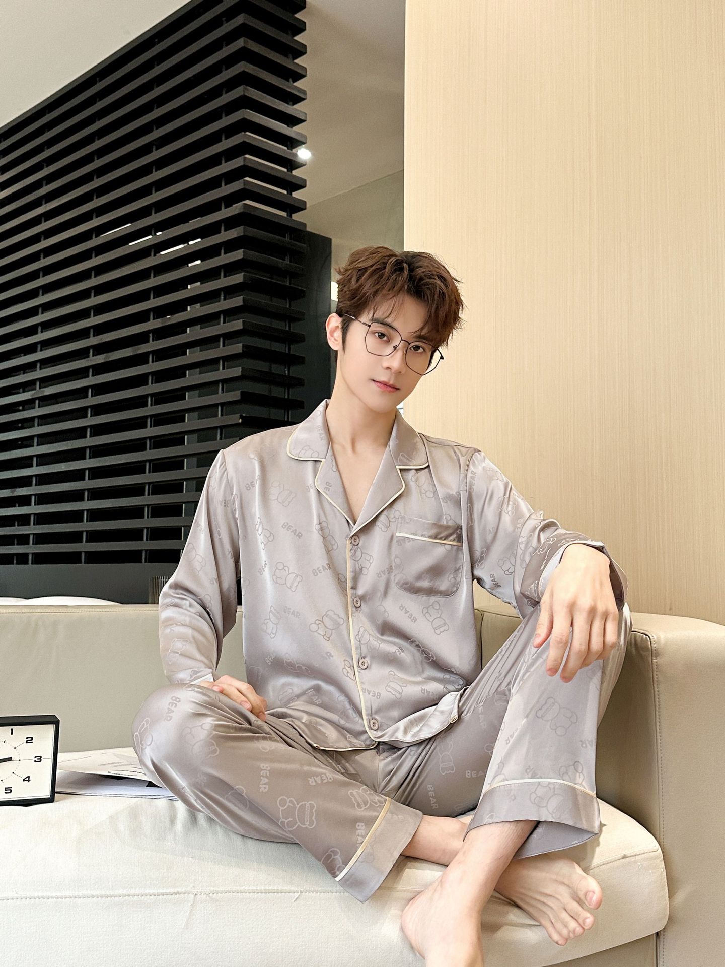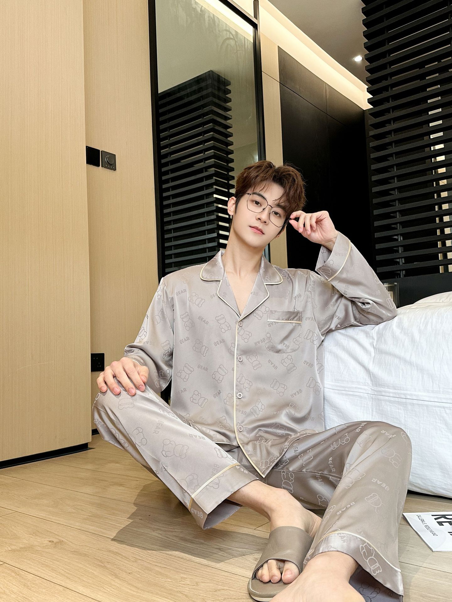 [큰 크기] 2024 봄 새 잠옷 남자 긴팔 얇은 얼음 실크 고급 자카드 대형 가정용 옷스토어 가기