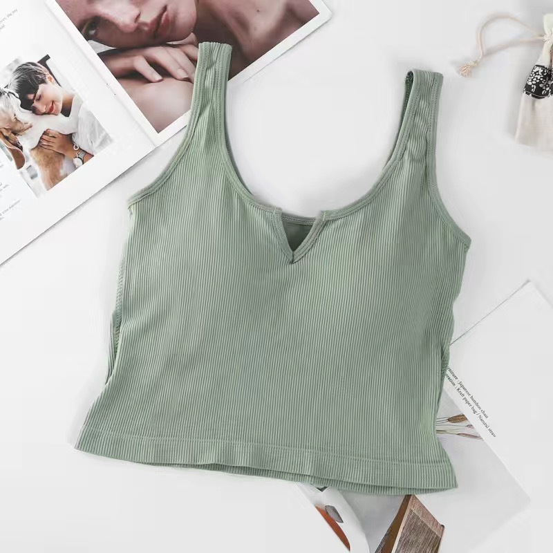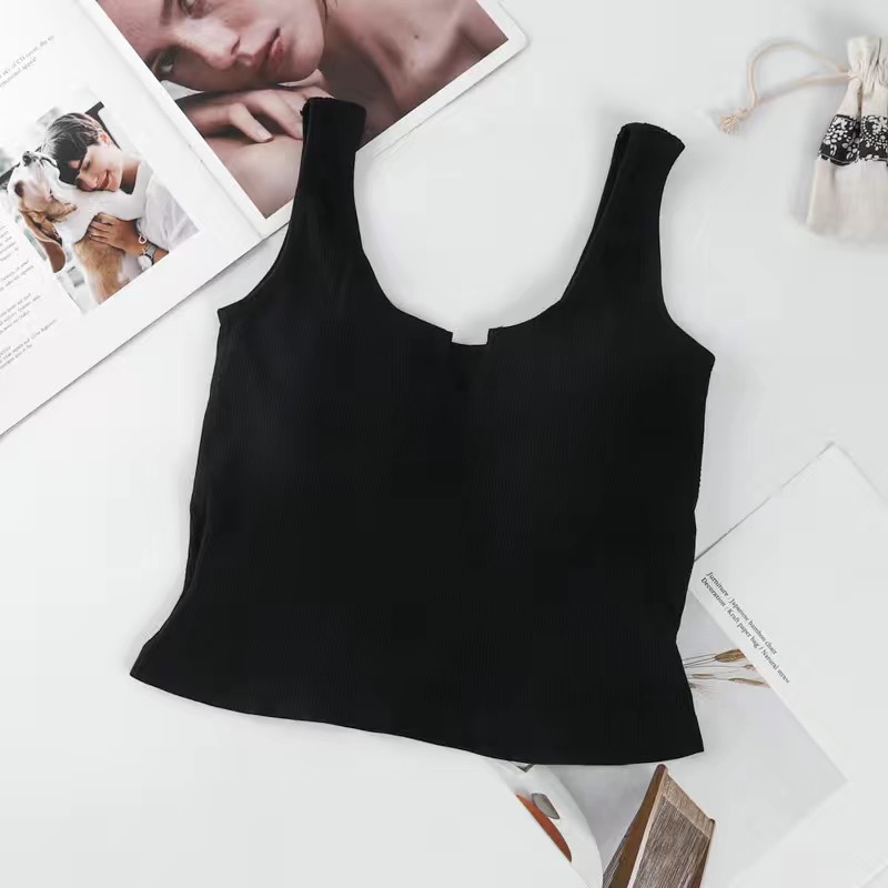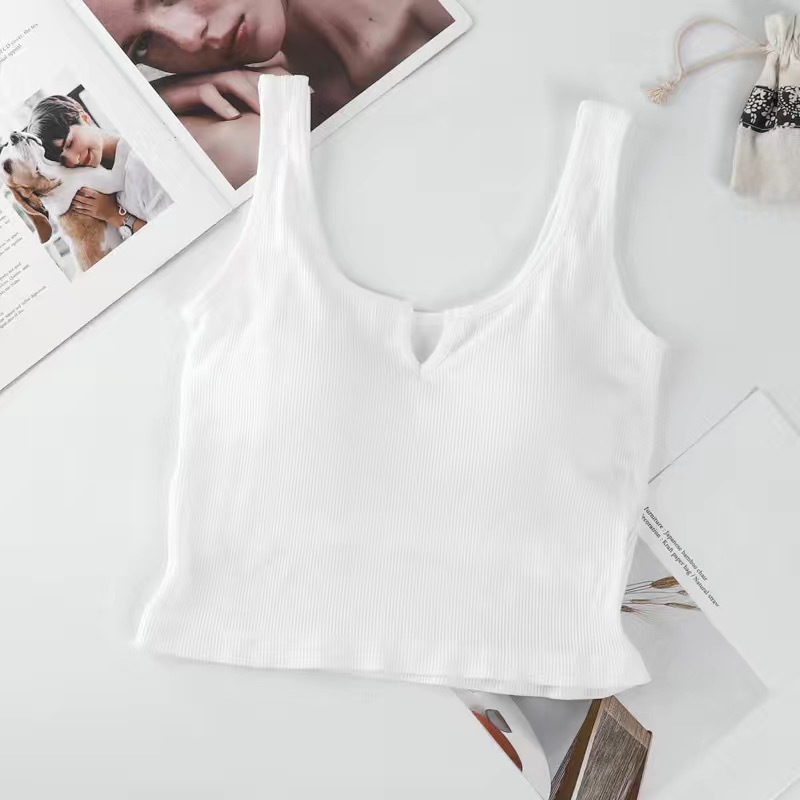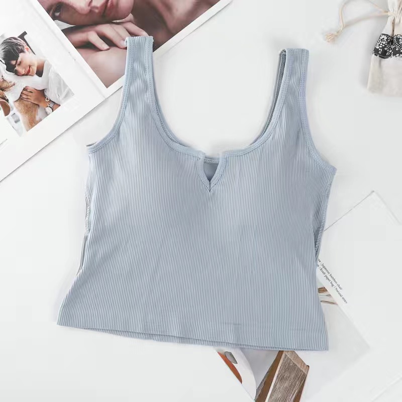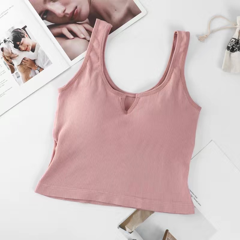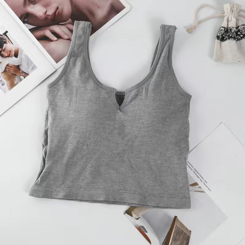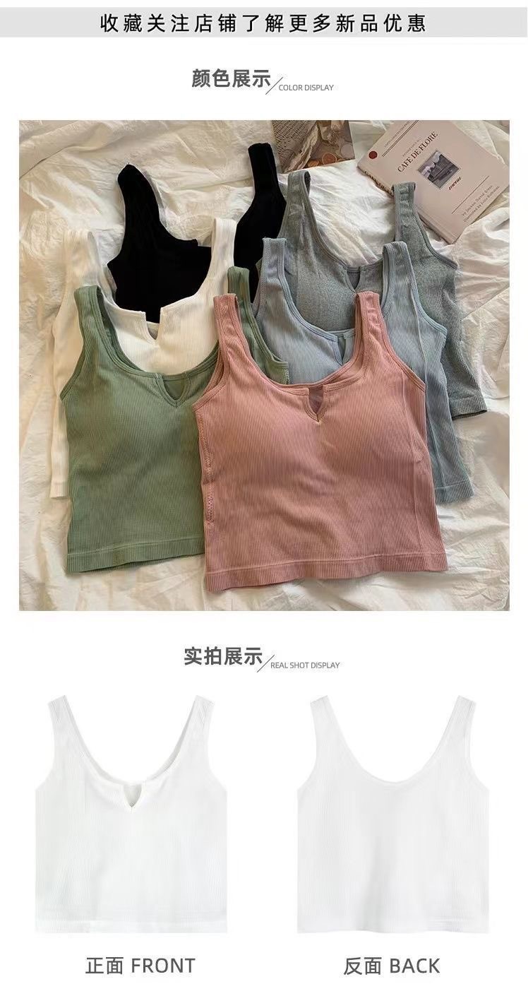 핫걸 니치 솔리드 컬러 캐미솔 여성용 가슴 패드 바닥 셔츠, 노출 방지 짧은 스포츠 탑, 다용도스토어 가기