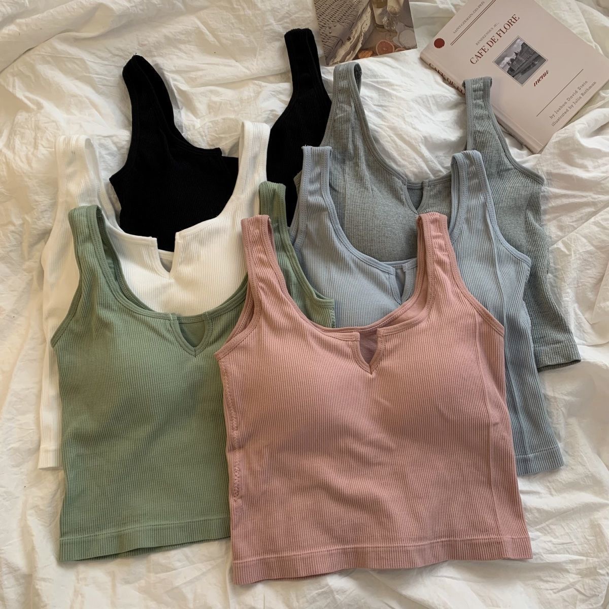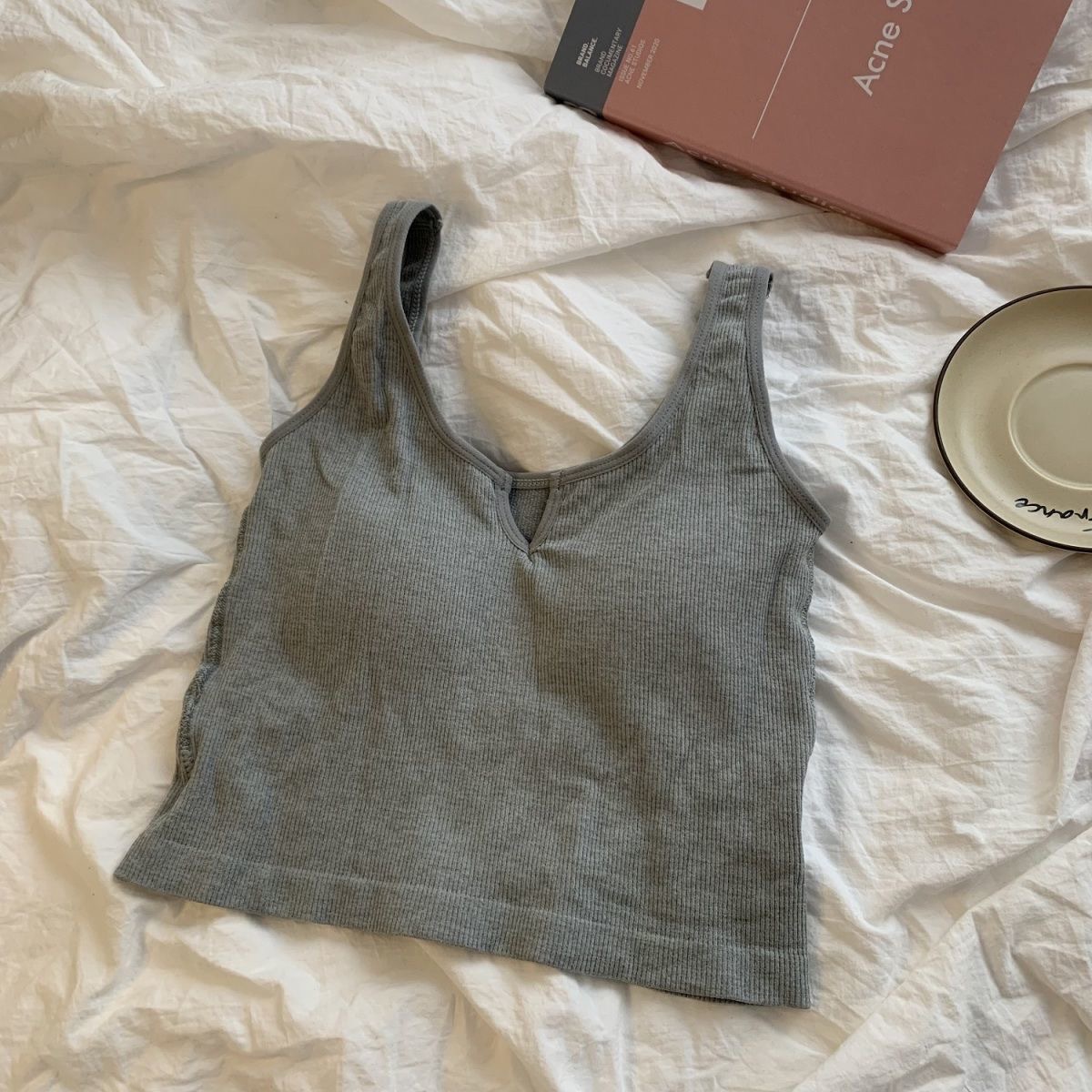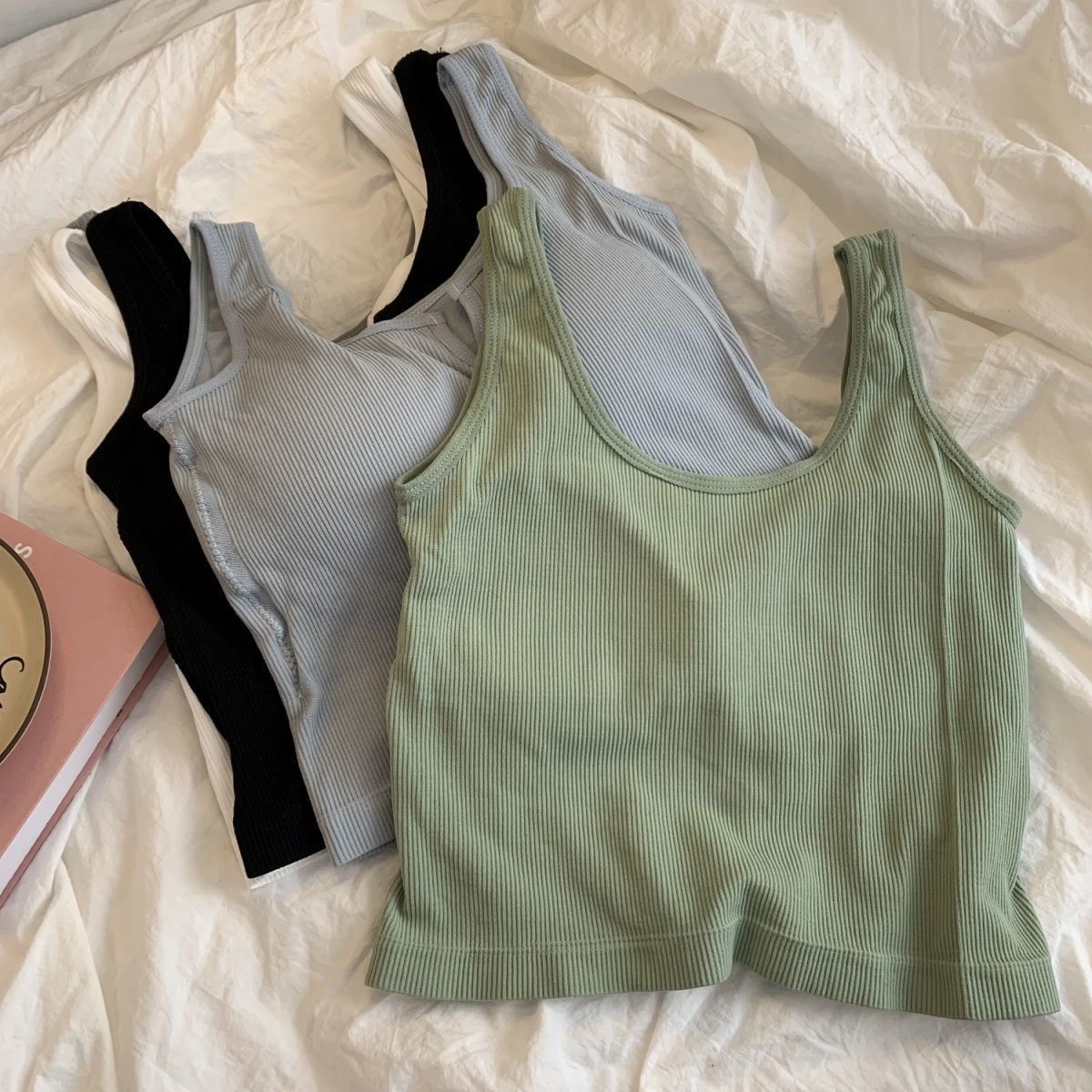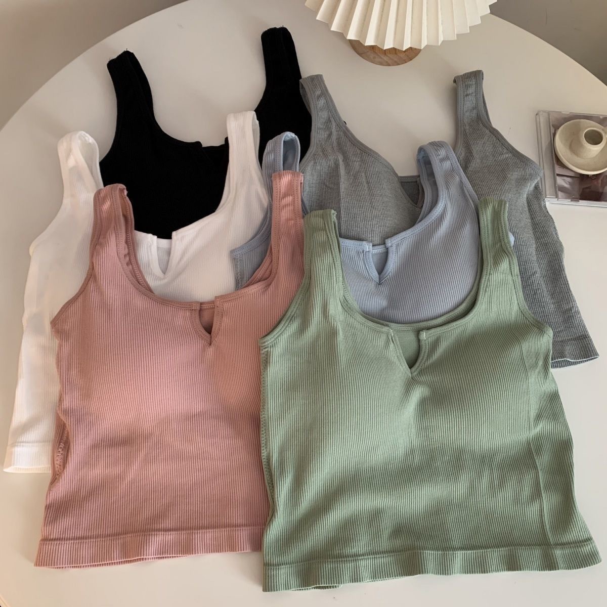핫걸 니치 솔리드 컬러 캐미솔 여성용 가슴 패드 바닥 셔츠, 노출 방지 짧은 스포츠 탑, 다용도스토어 가기