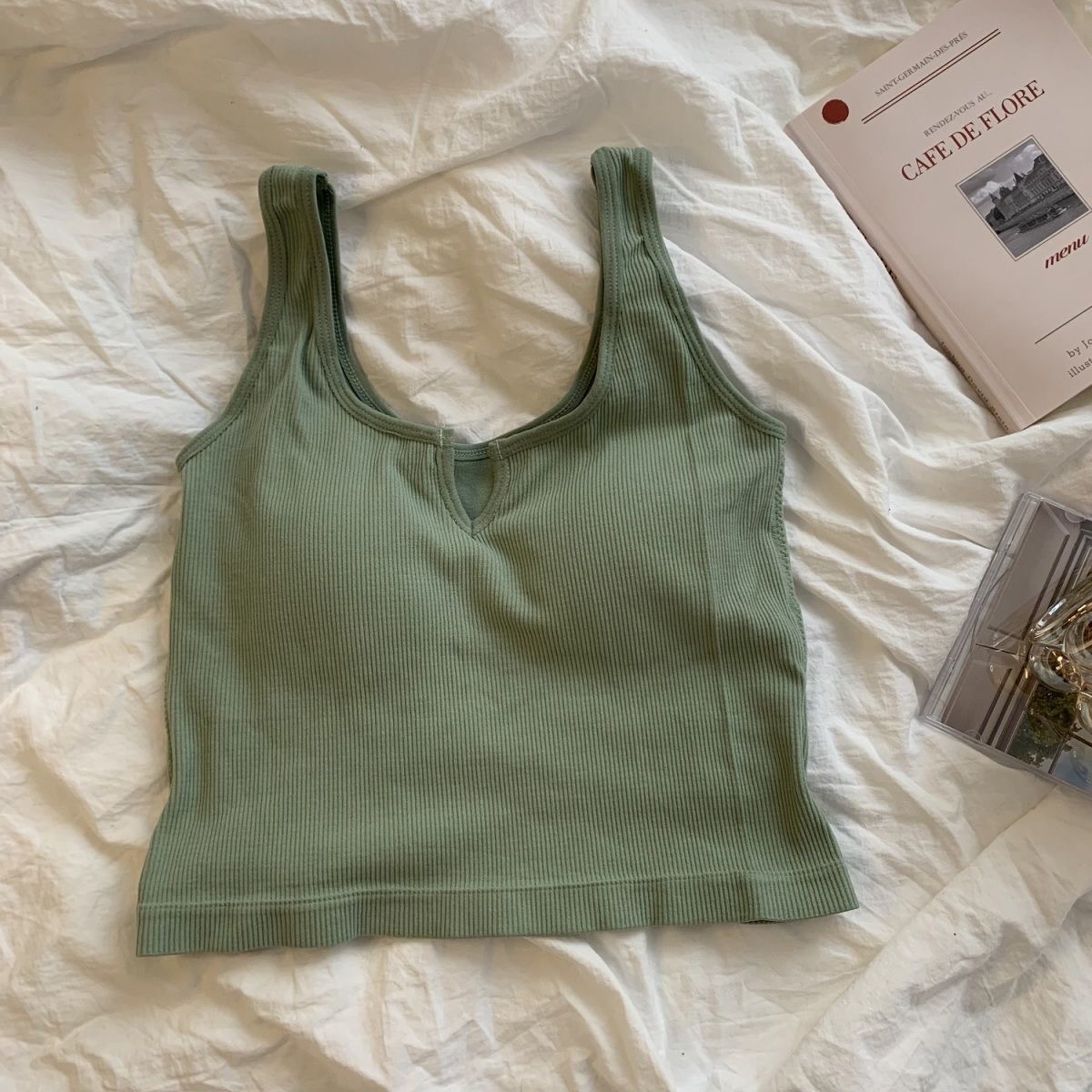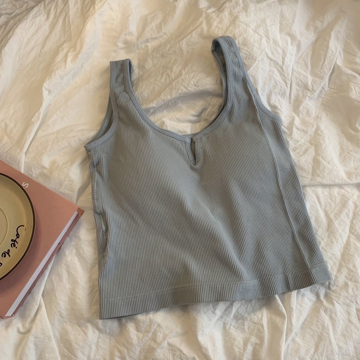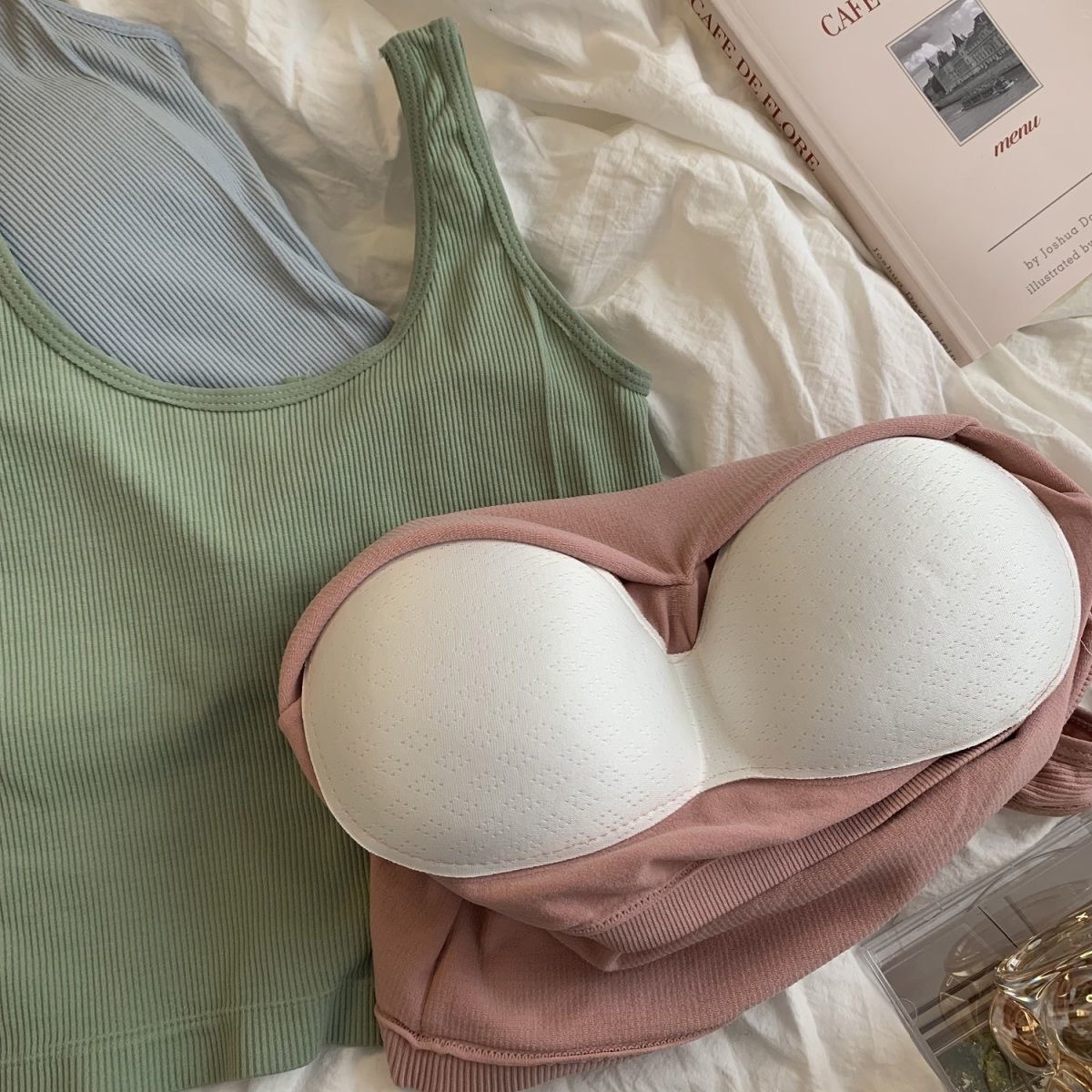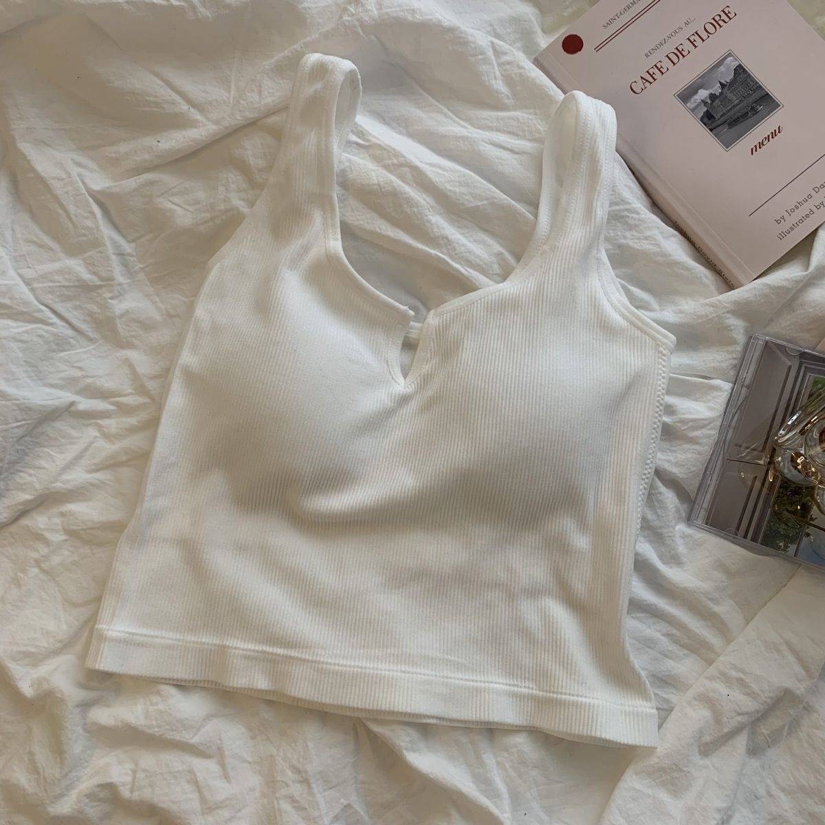 핫걸 니치 솔리드 컬러 캐미솔 여성용 가슴 패드 바닥 셔츠, 노출 방지 짧은 스포츠 탑, 다용도스토어 가기