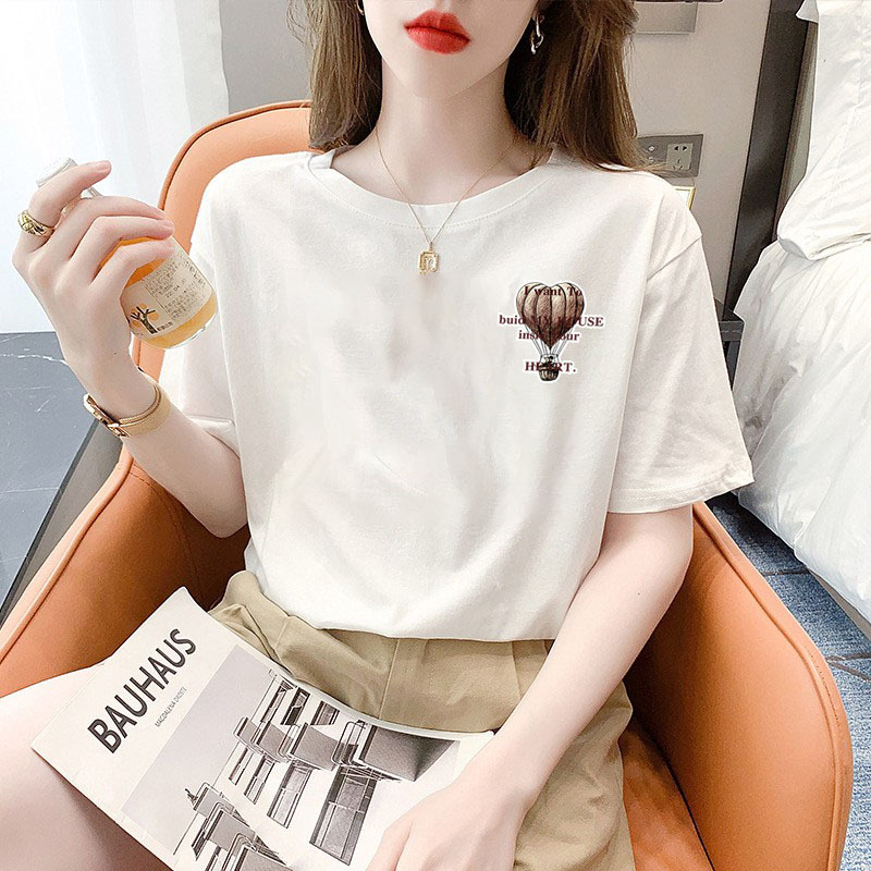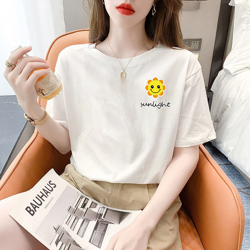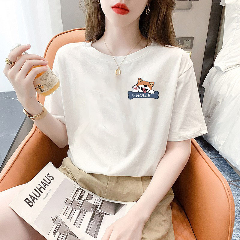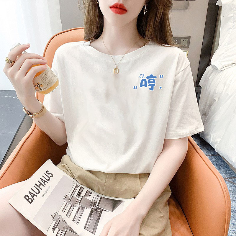 230g 코튼 반팔 티셔츠 여성 톱 2024 여름 새로운 여성 느슨한 화이트, 여성 의류스토어 가기