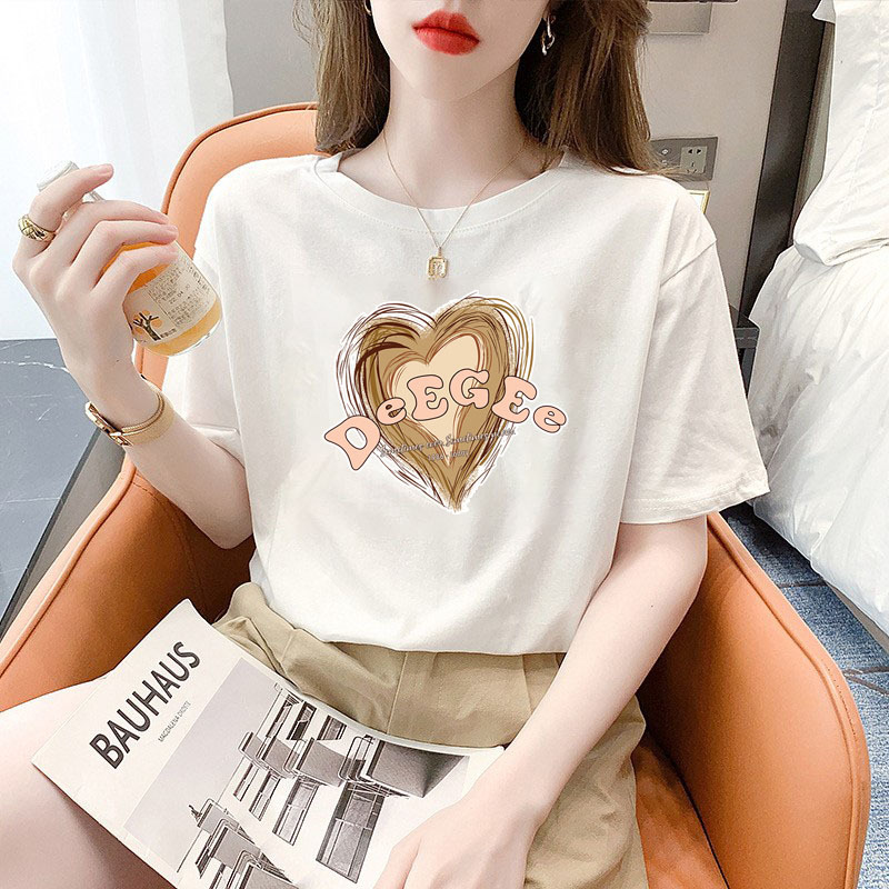 230g 코튼 반팔 티셔츠 여성 톱 2024 여름 새로운 여성 느슨한 화이트, 여성 의류