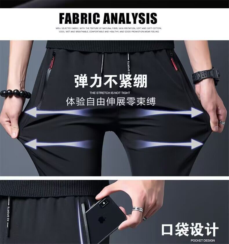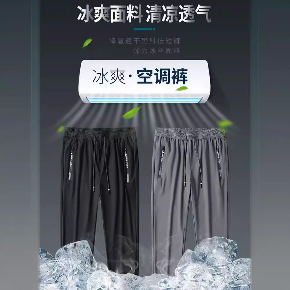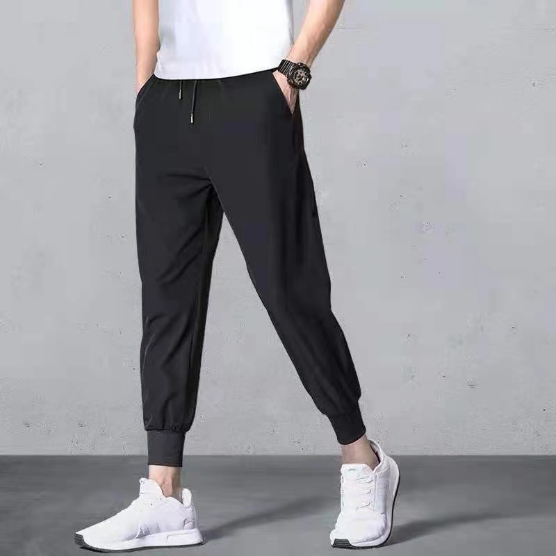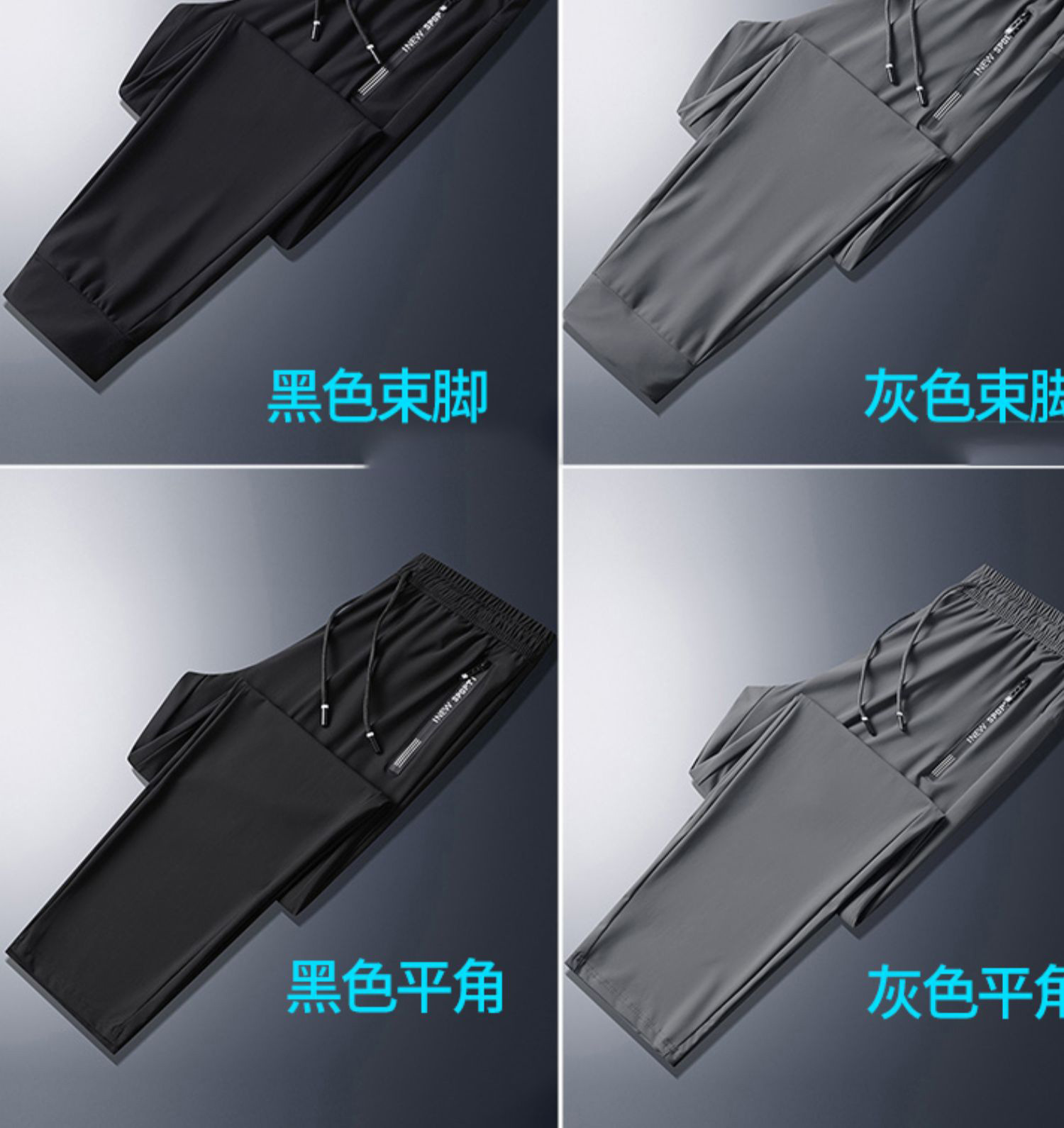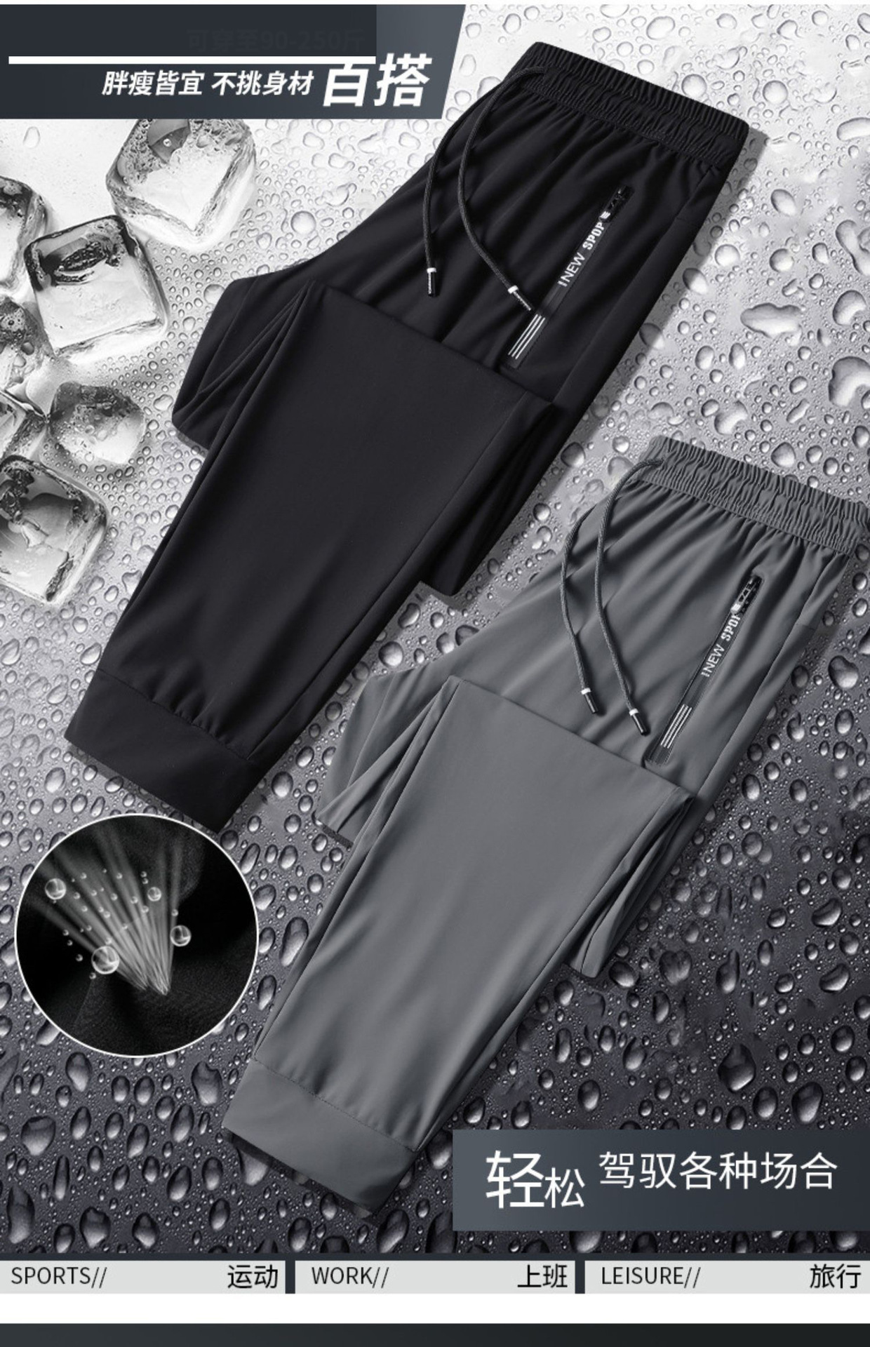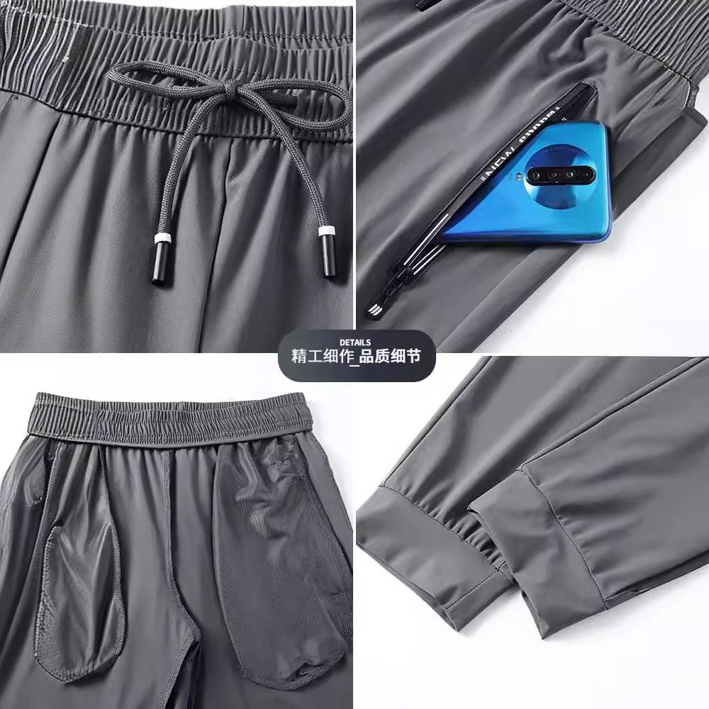 긴 바지 남성용 캐주얼 바지 여름 아이스 실크 얇은 느슨한 빠른 건조 할란 발목 바지 남성용 트렌디 한 스포츠 바지스토어 가기