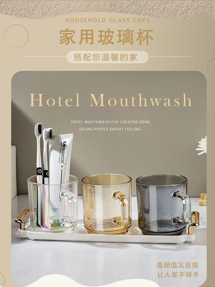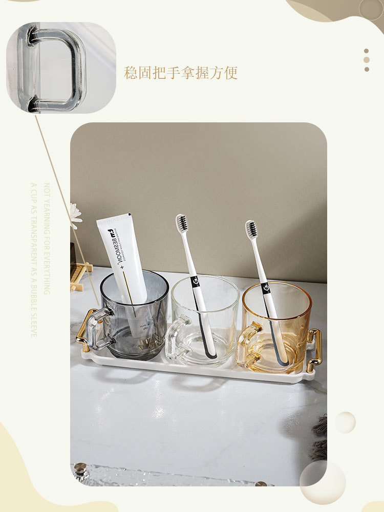 一家三口洗漱杯牙杯轻奢简约高颜值玻璃漱口杯情侣牙缸刷牙杯家用