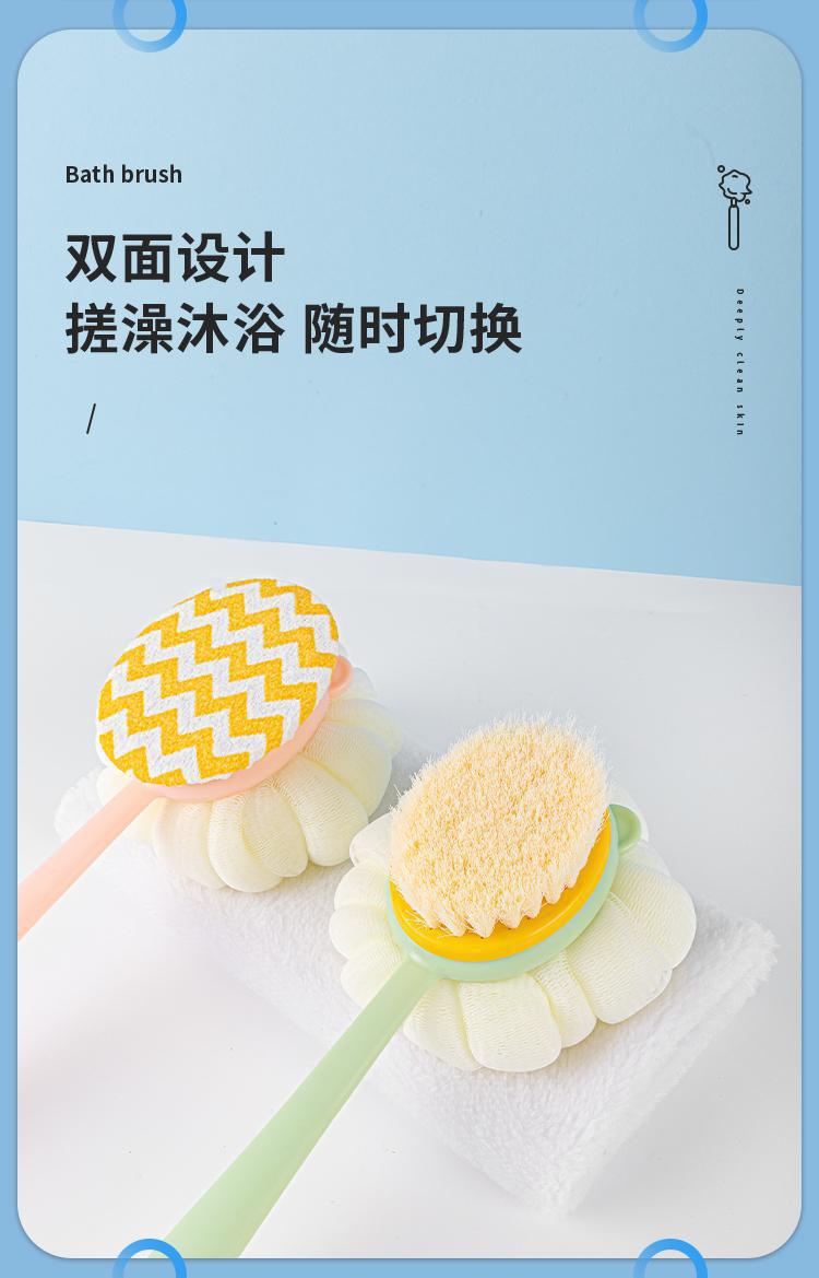 双面搓澡神器浴刷长柄软毛洗澡刷可拆卸搓澡巾沐浴球强力搓背刷子