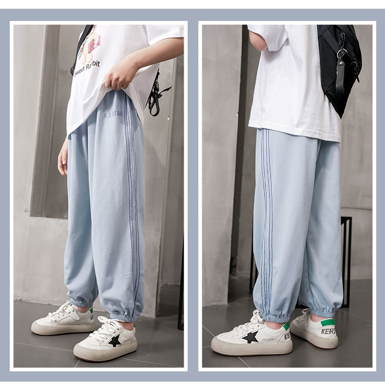 어린이 바지 여름 얇은 소년 바지 소녀 안티 모기 바지 큰 어린이 여름 착용 어린이 줄무늬 캐주얼 스포츠 바지스토어 가기