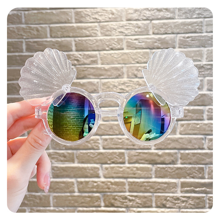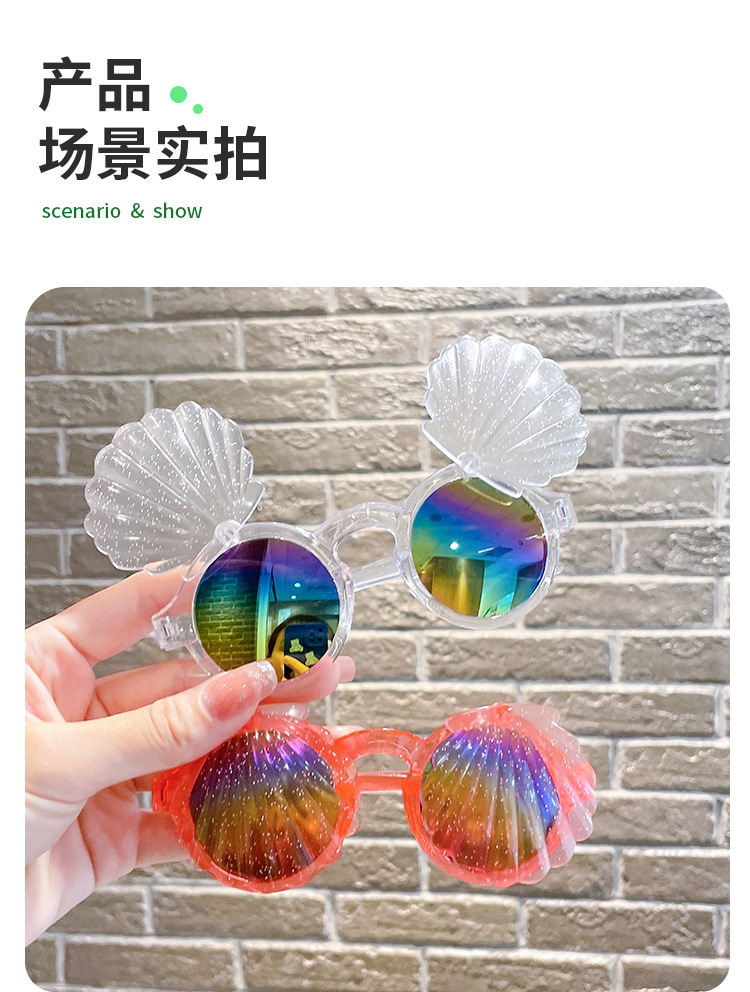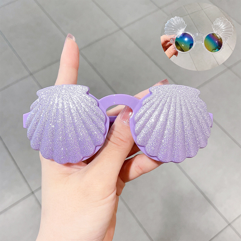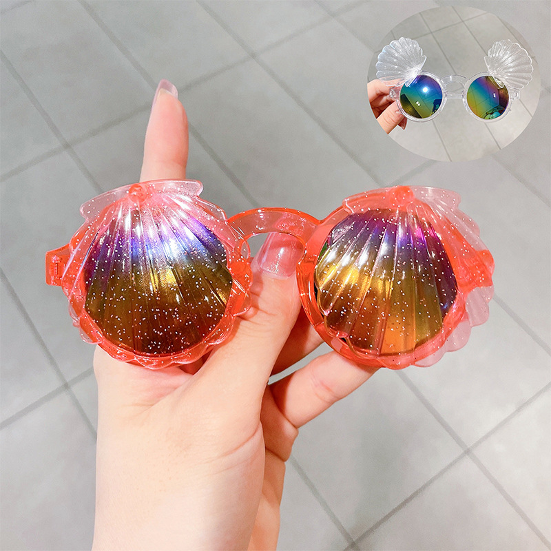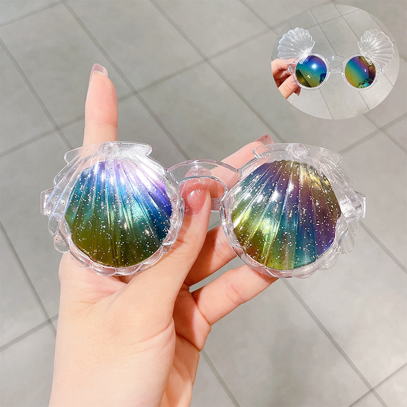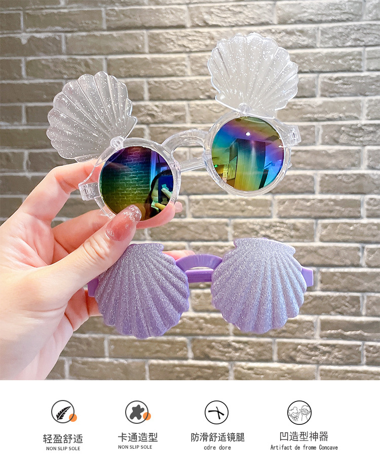 어린이 선글라스 귀여운 아기 플립 장난감 안경 소녀 쉘 모양 소년 소녀 선글라스 UV 보호