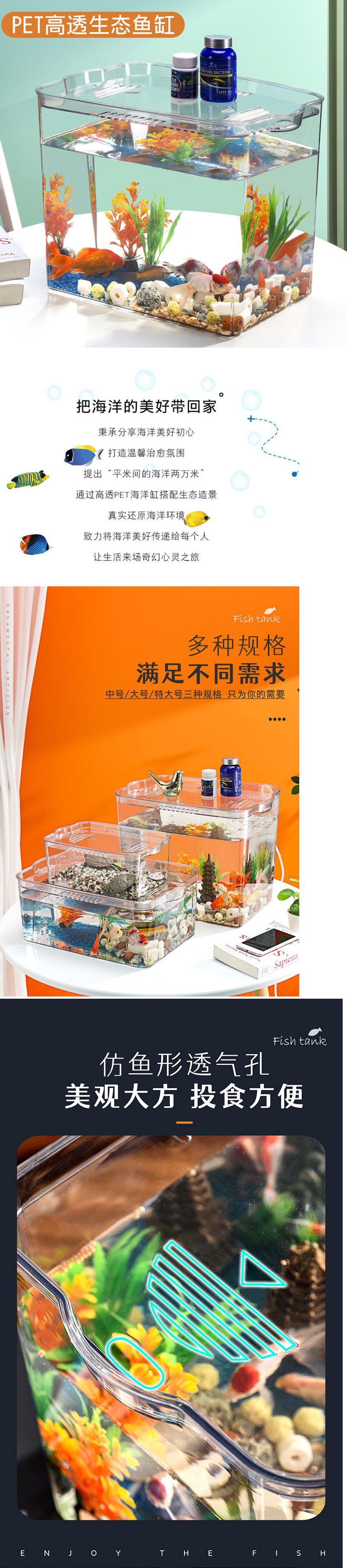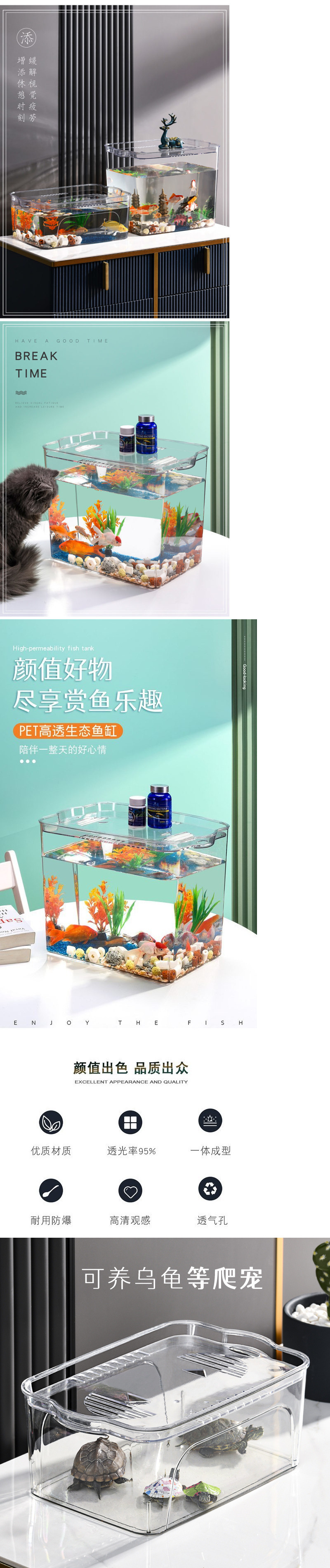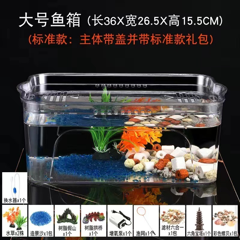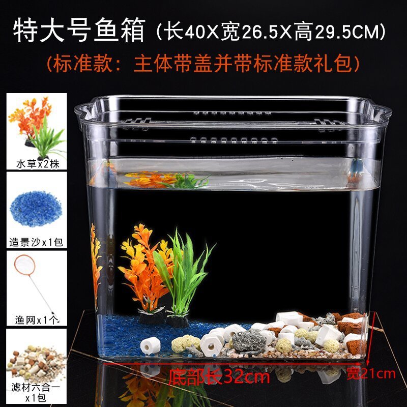 플라스틱 어항 투명 모조 유리 에코 버킷 어항 가정용 수족관 투명 금붕어 탱크 거실 미니 중형