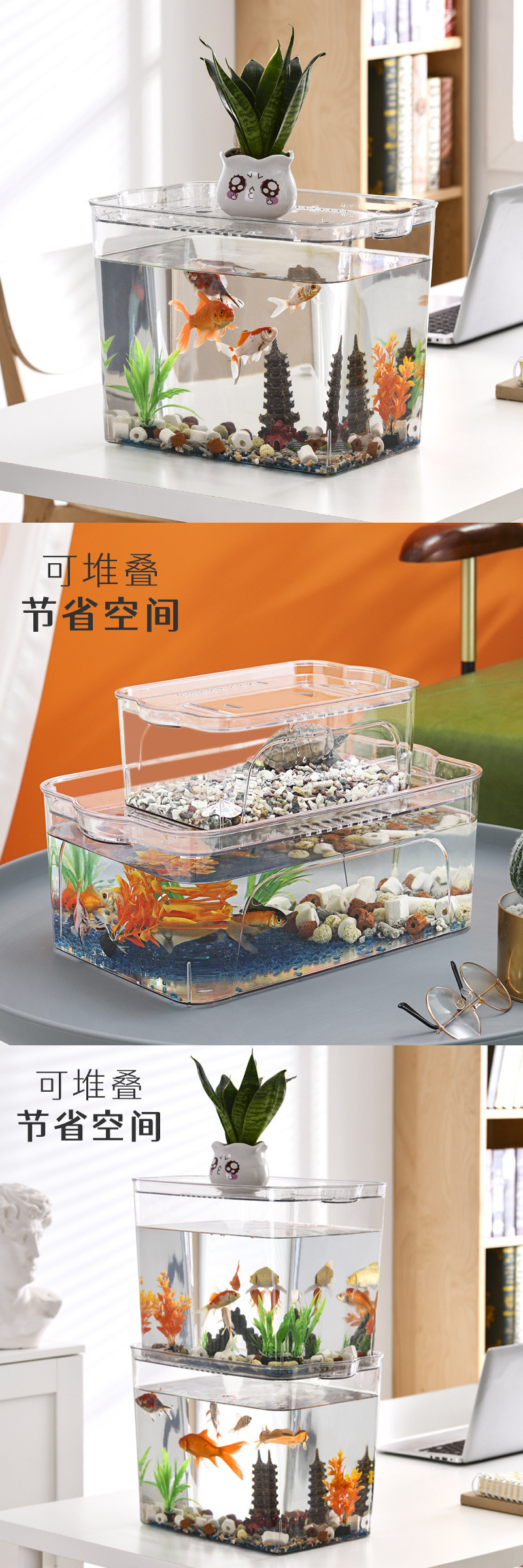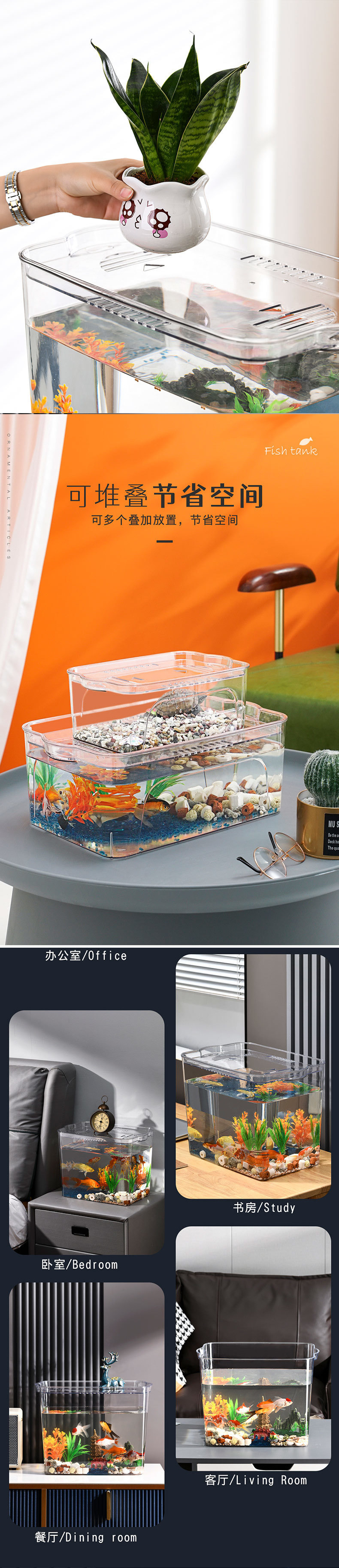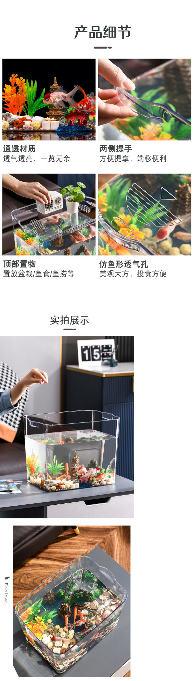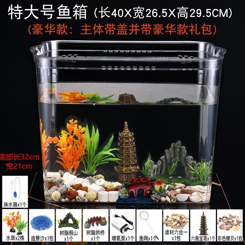 플라스틱 어항 투명 모조 유리 에코 버킷 어항 가정용 수족관 투명 금붕어 탱크 거실 미니 중형스토어 가기