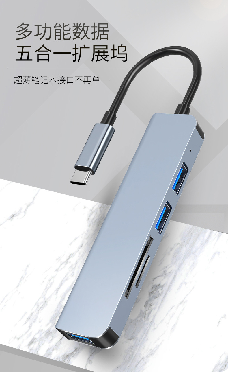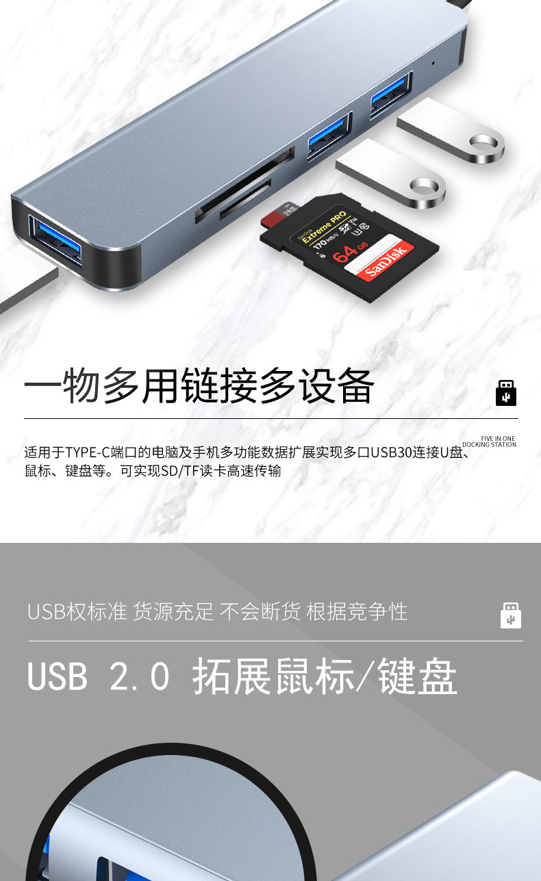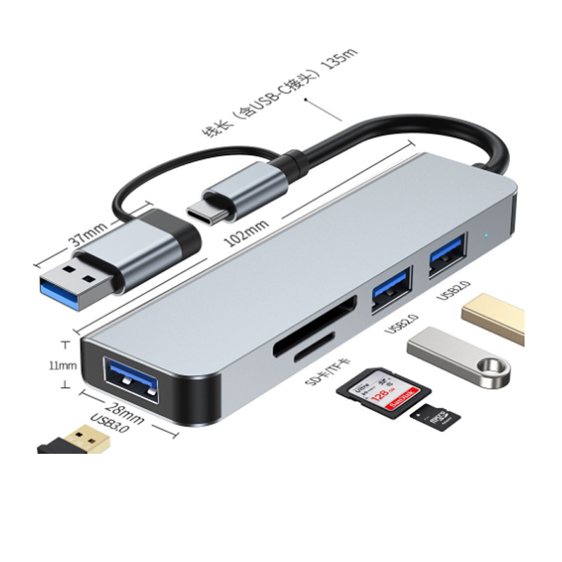 USB-C+USB转USB3.0*1+2.0*2+TF+SD拓展坞