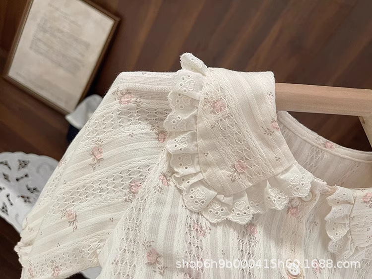 여아 가을 셔츠 2025 신상 여아용 세련되고 달콤한 고급스러운 질감의 자카드 패턴 꽃무늬 셔츠