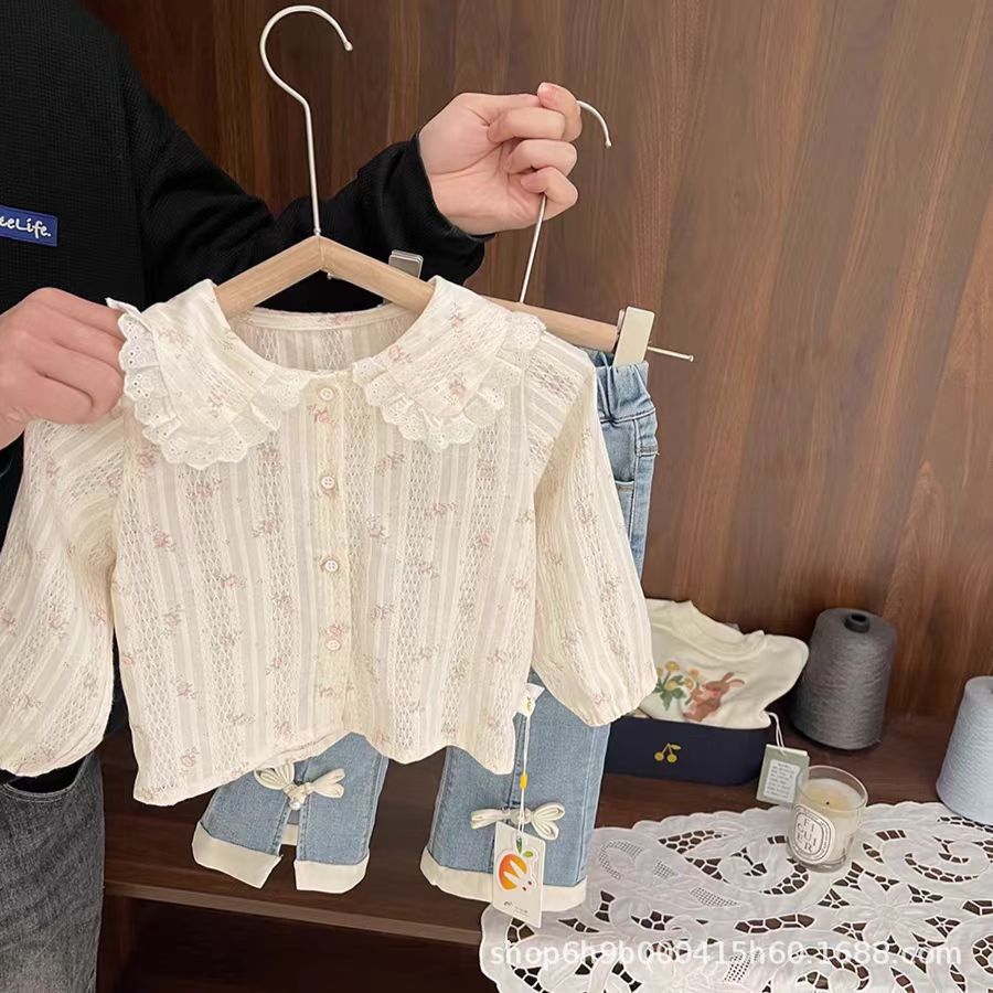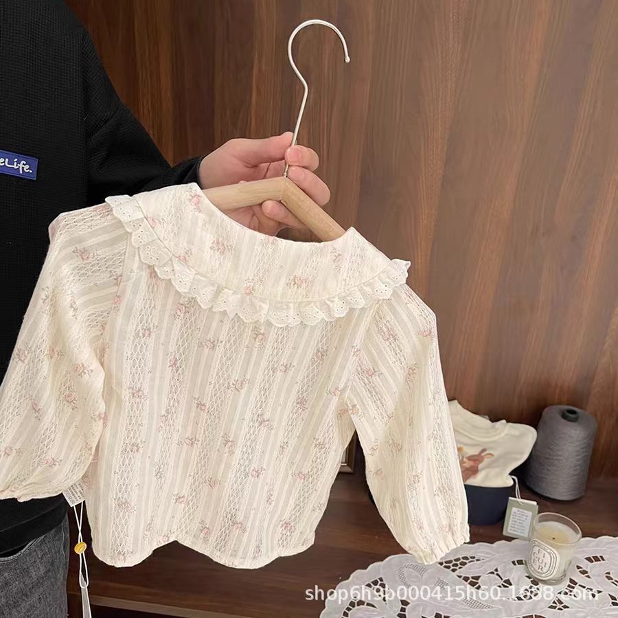 여아 가을 셔츠 2025 신상 여아용 세련되고 달콤한 고급스러운 질감의 자카드 패턴 꽃무늬 셔츠스토어 가기