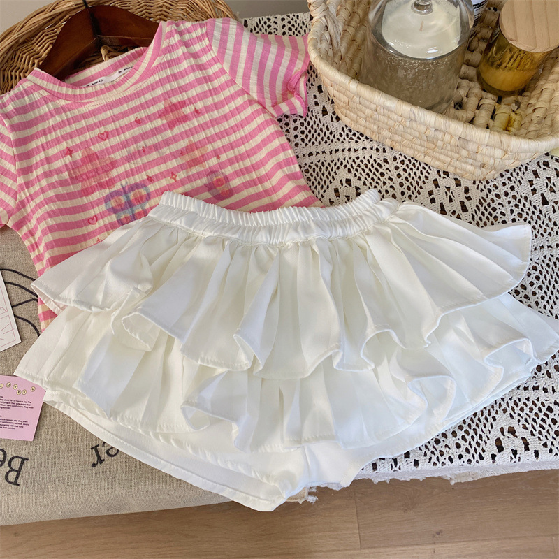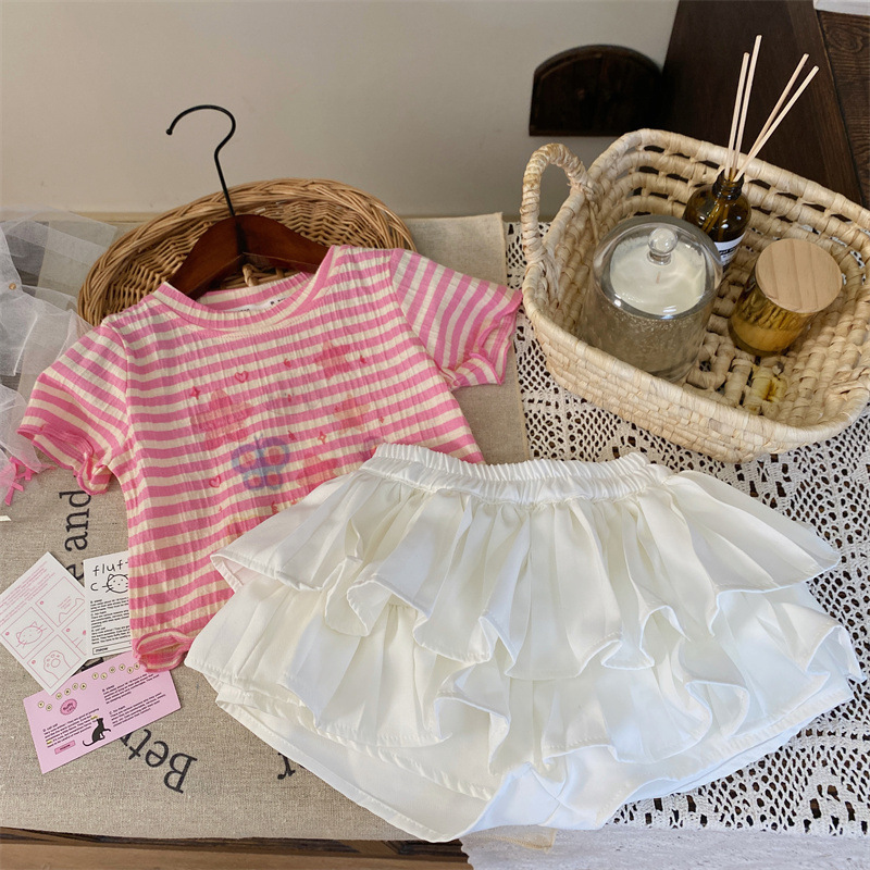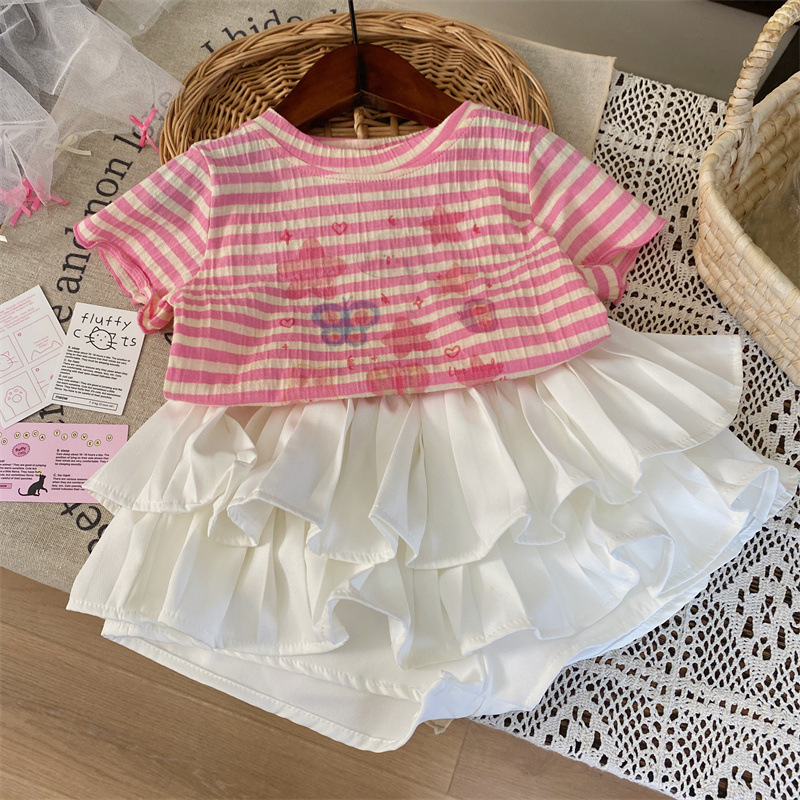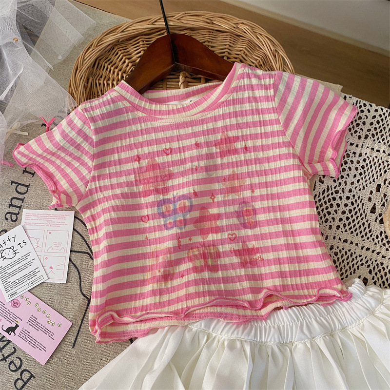 반품, 교환 불가 [합리적 주문] 여름 여아 스트라이프 반팔 티셔츠 프린트 반팔 상의