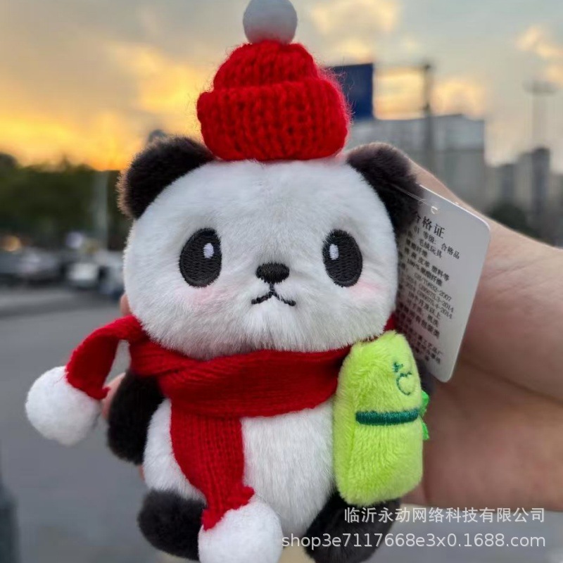 • 모자, 빨간 스카프, 죽순을 들고 있는 팬더