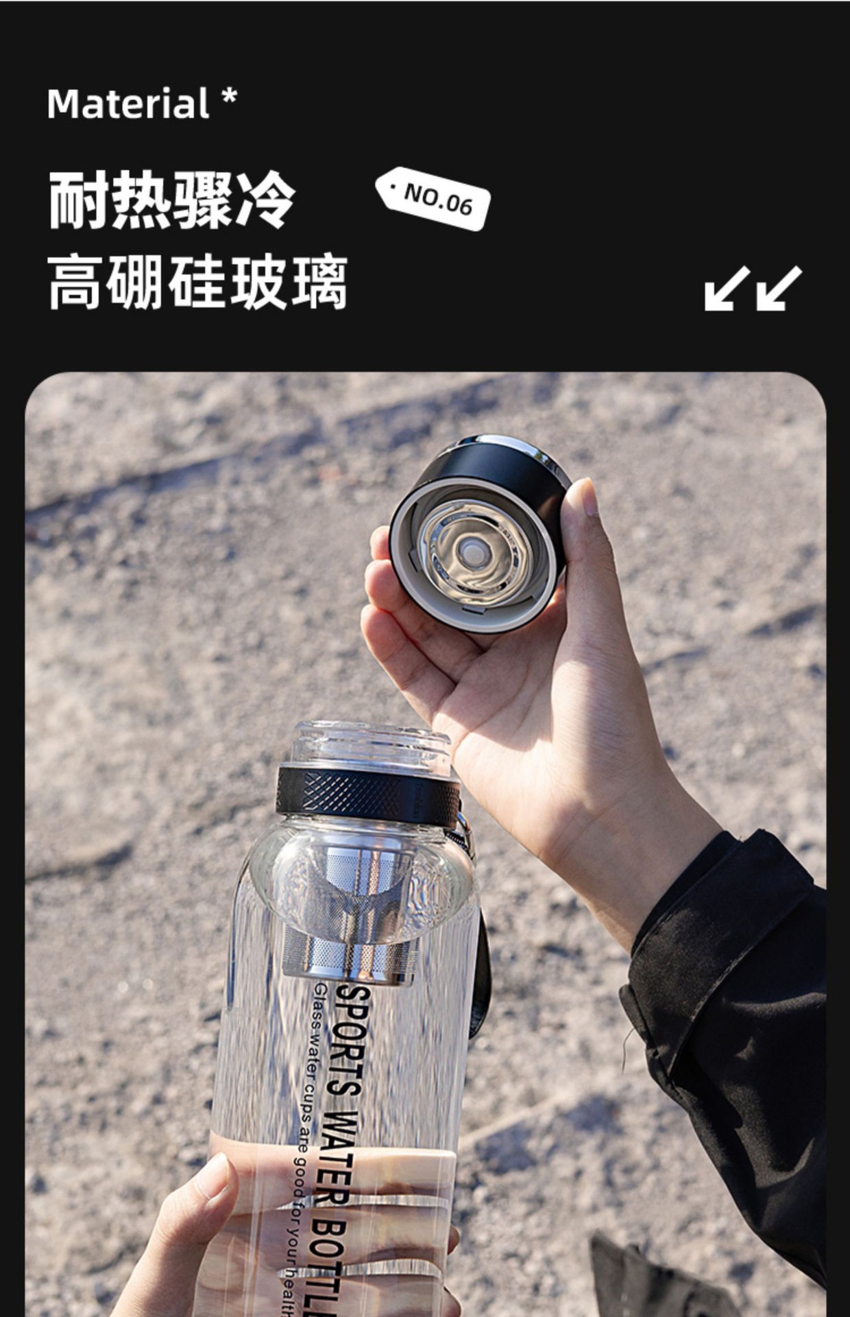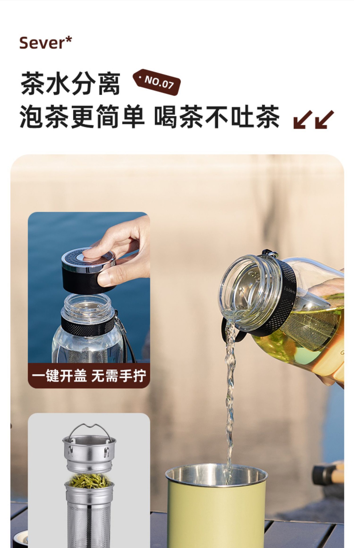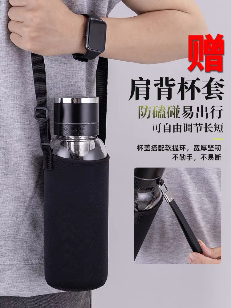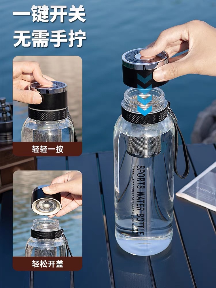 차와 물 분리가 가능한 원터치 오픈 컵, 야외용 대용량 유리컵, 남녀공용 차컵, 고붕규산 투명 물컵