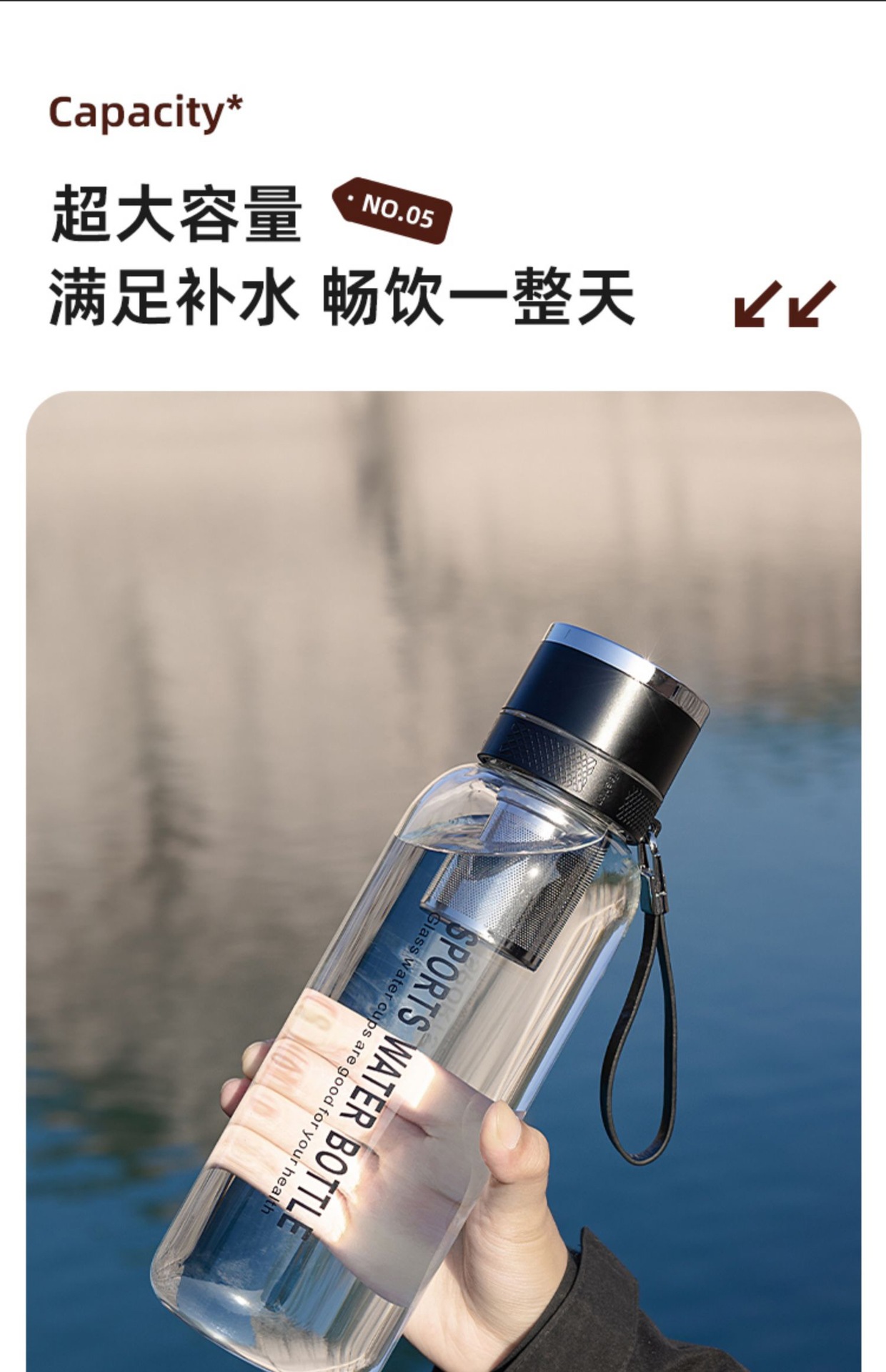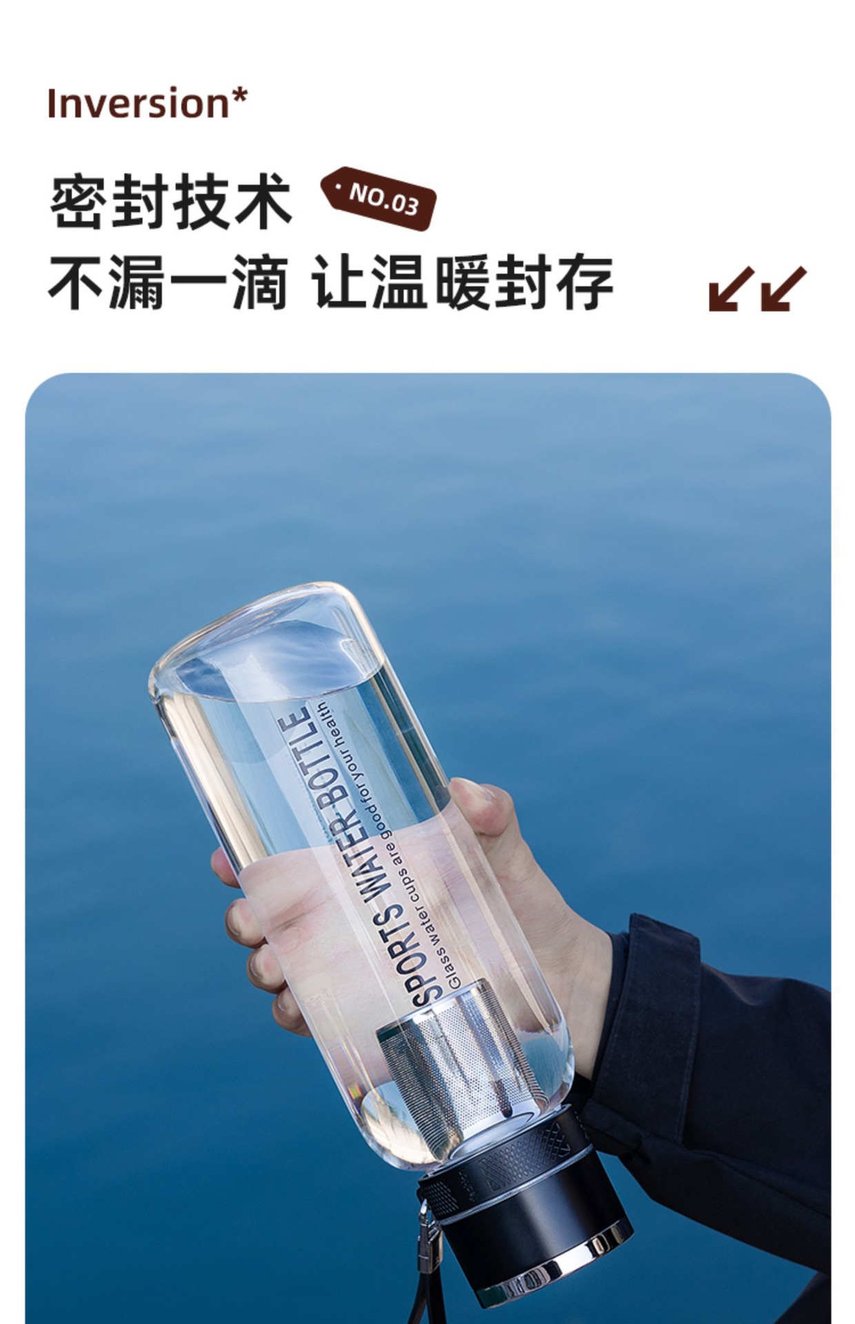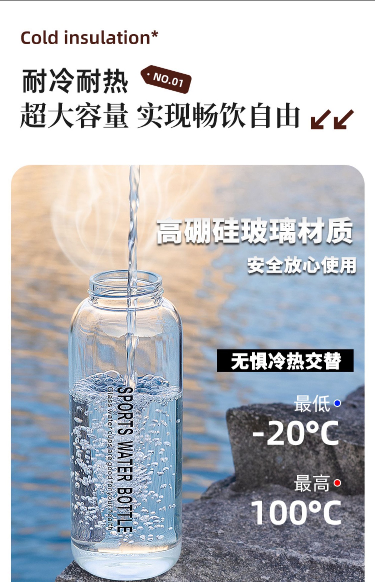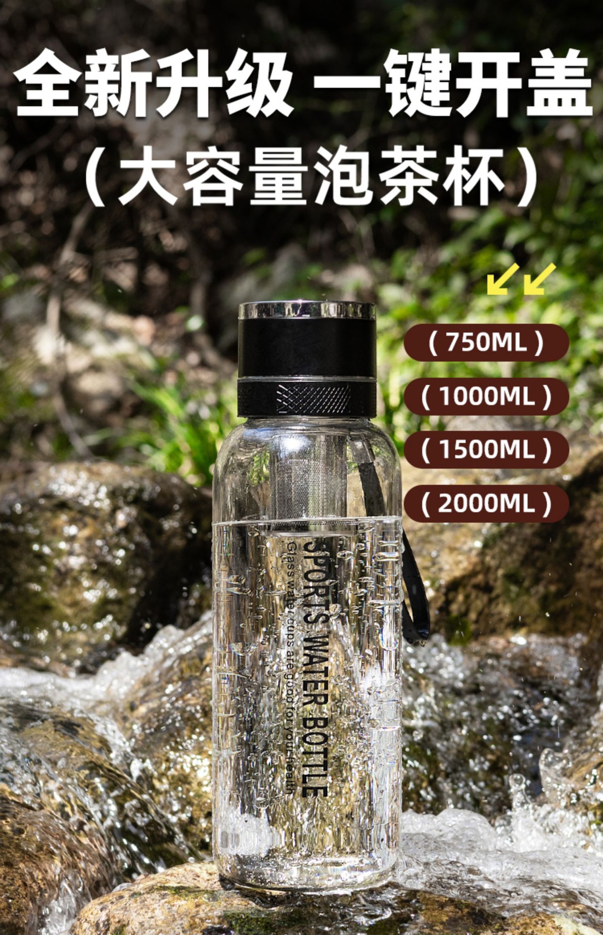 차와 물 분리가 가능한 원터치 오픈 컵, 야외용 대용량 유리컵, 남녀공용 차컵, 고붕규산 투명 물컵