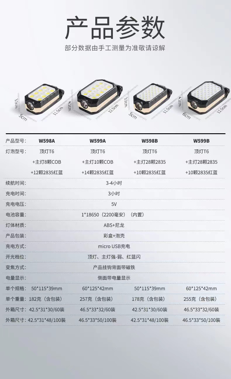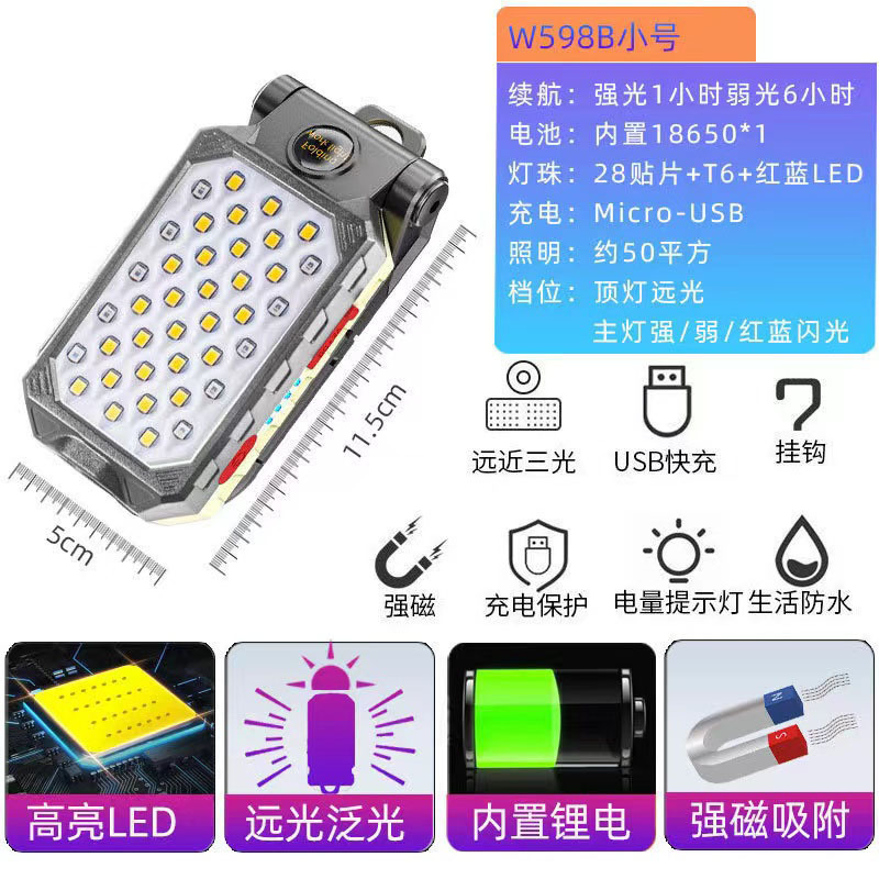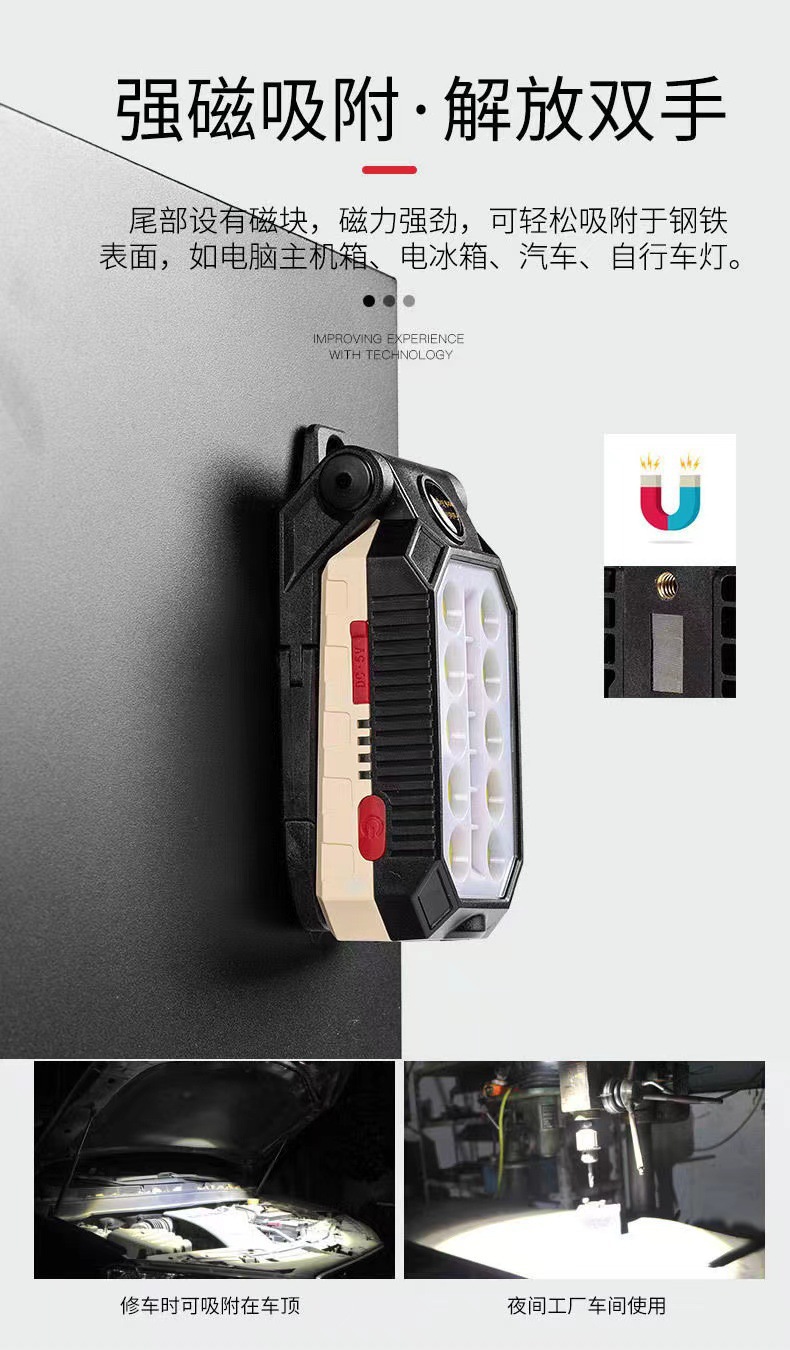 COB 작업 램프 USB 충전 다기능 접이식 유지 보수 자석 전원 디스플레이 LED 비상 경고 손전등