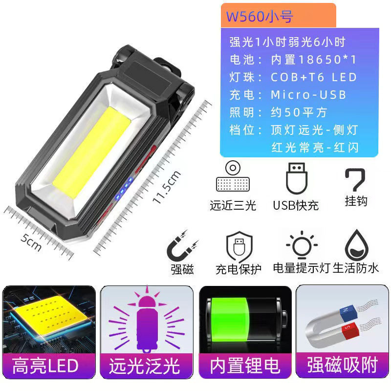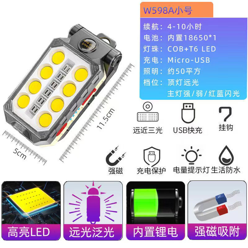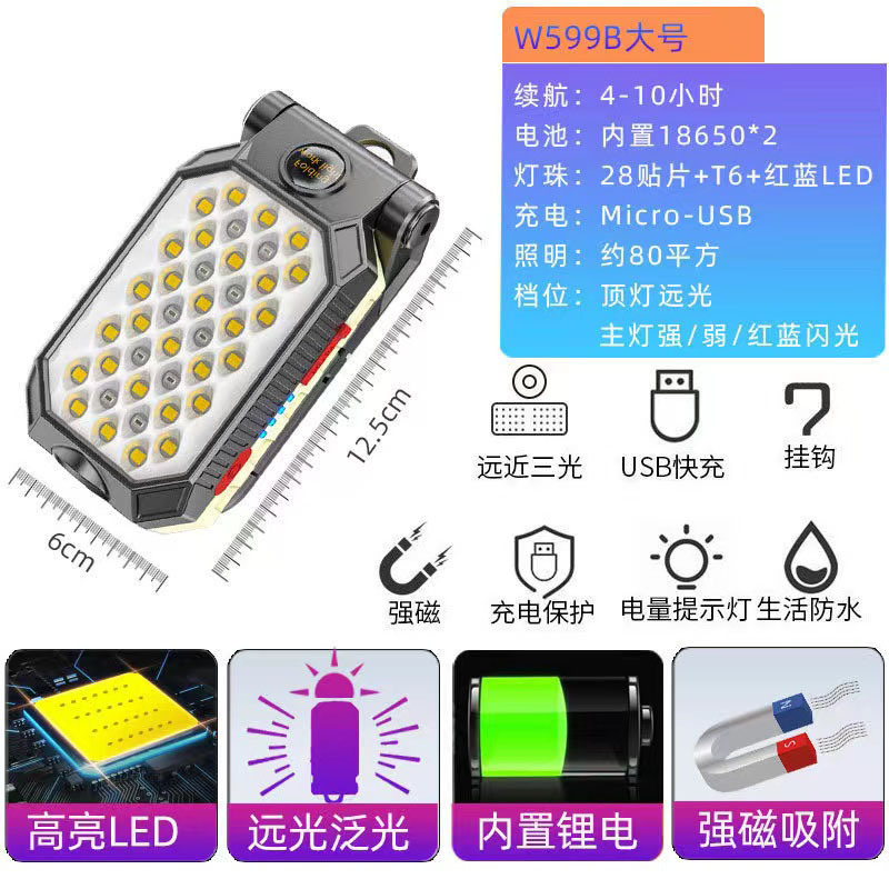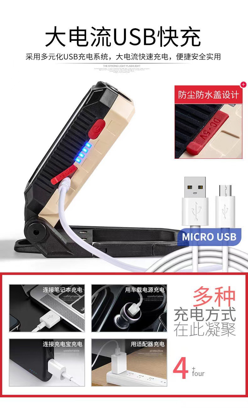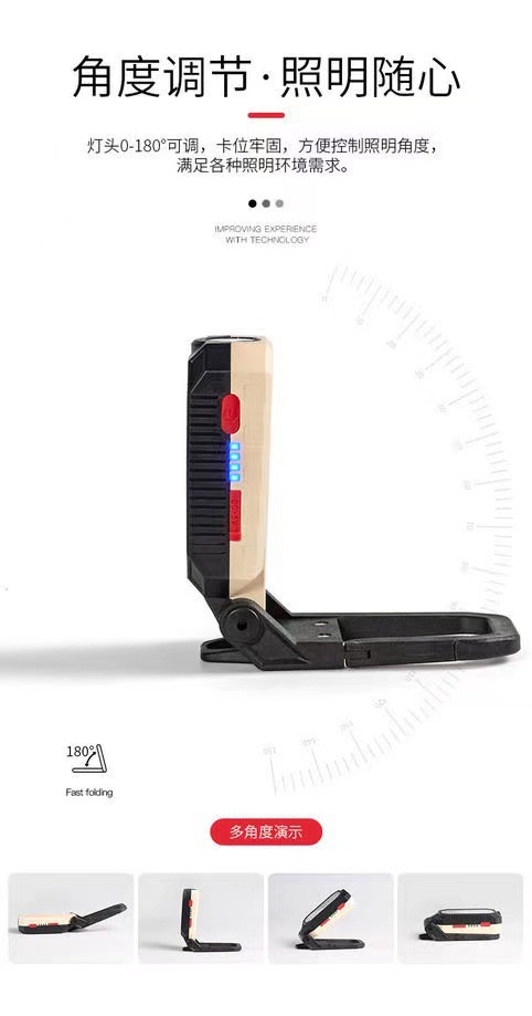 COB 작업 램프 USB 충전 다기능 접이식 유지 보수 자석 전원 디스플레이 LED 비상 경고 손전등스토어 가기