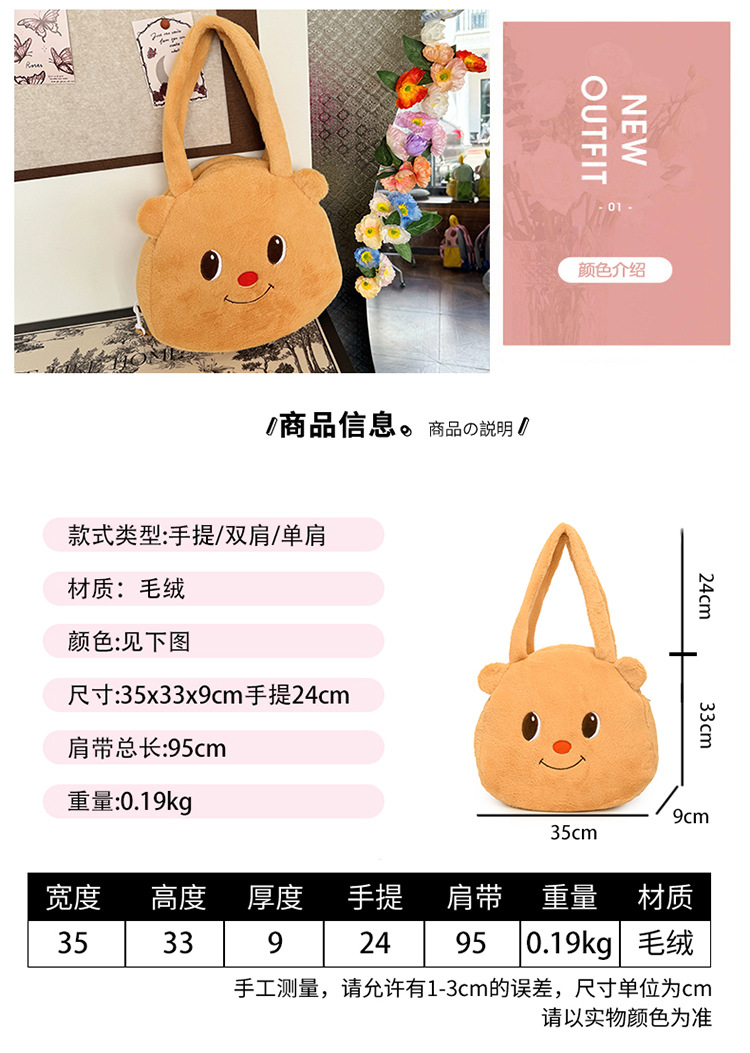 버터베어 크로스백 여성용 만화 일본풍 대용량 플러시 숄더백 일본풍 귀여운 가방스토어 가기