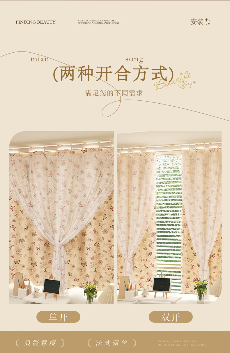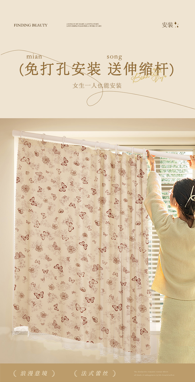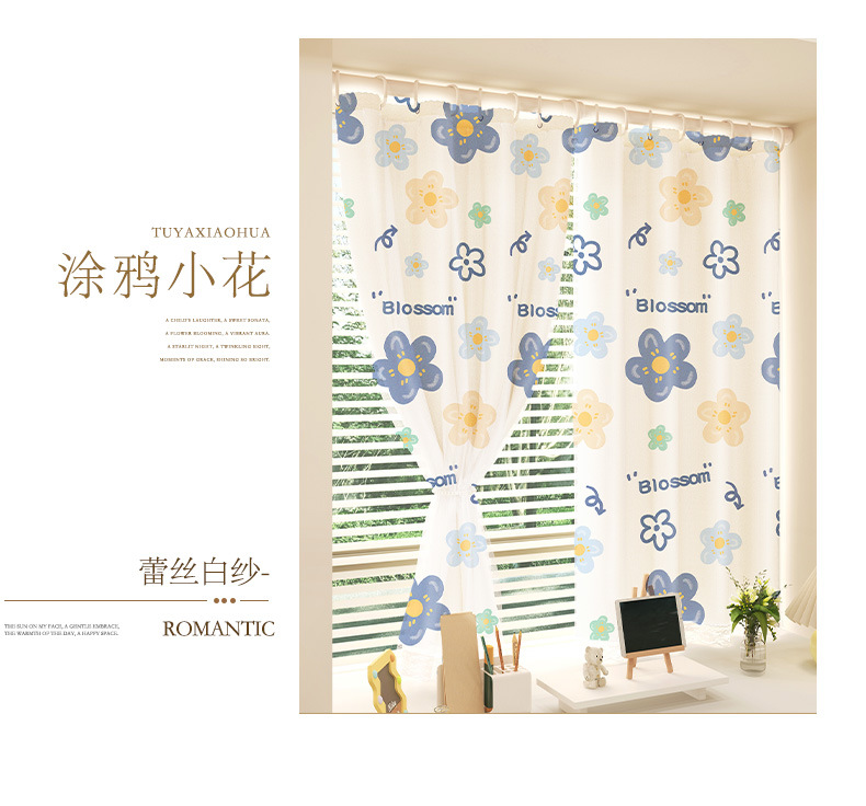 거즈커튼 무타공 설치형 커튼, 침실용, 기숙사용, 주방용, 프린트, 투광성, 불투명, 이중 거즈 마감제품
