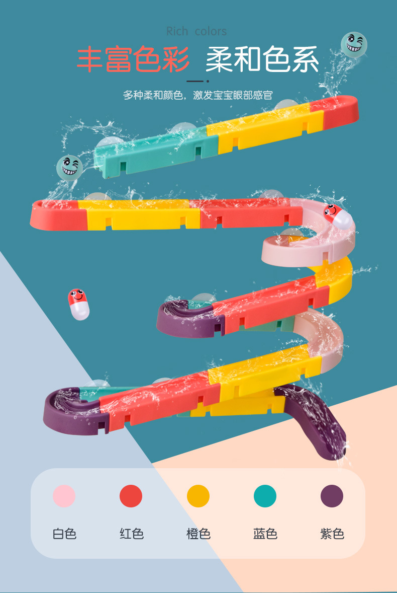 국경을 넘는 어린이용 물놀이 샤워기 장난감, 조립식 트랙 욕실 게돌이 회전놀이 아기 목욕 장난감스토어 가기