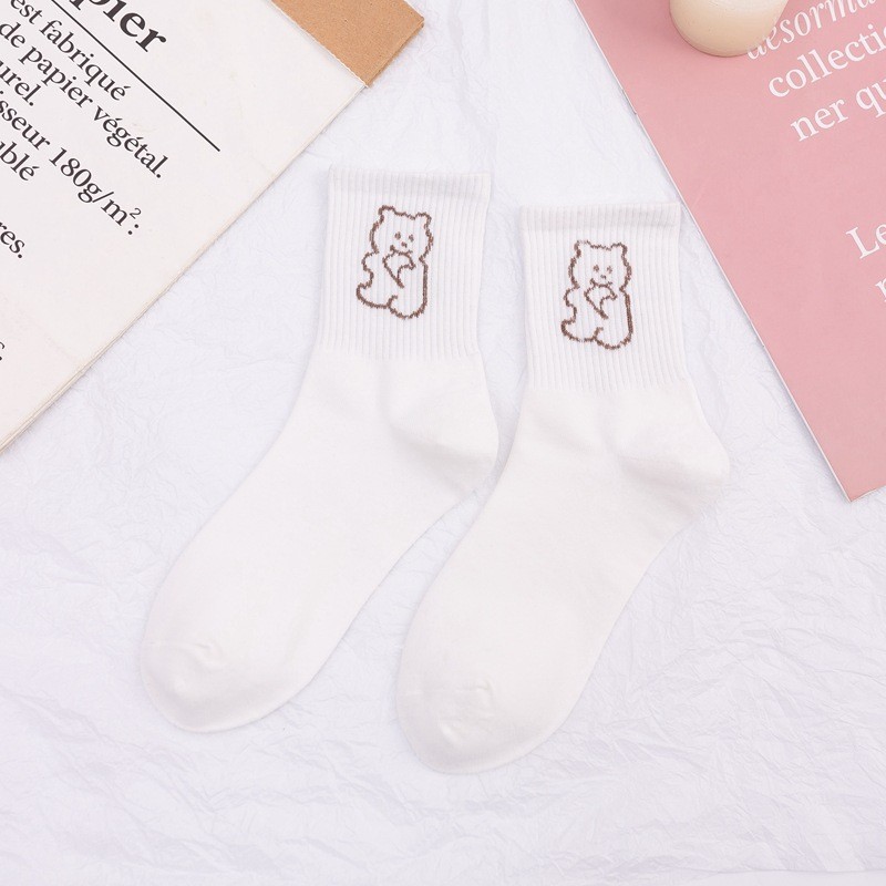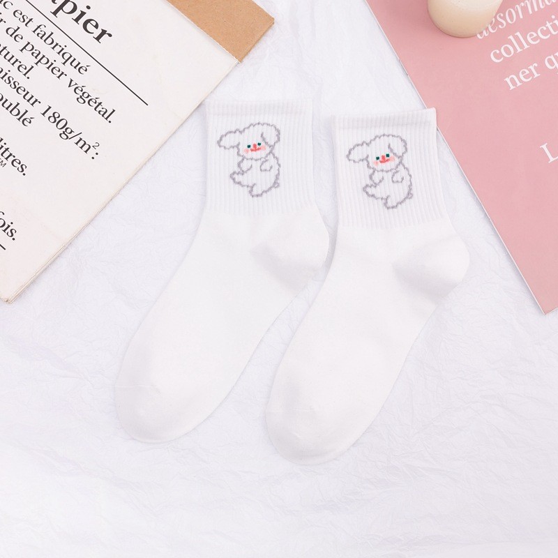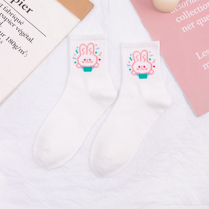 일본 스타일의 새로운 스타일 양말 여성 화이트 스타일 귀여운 만화 코튼 미드 튜브 여성 양말 INS 스타일 만화 양말 스포츠 양말스토어 가기