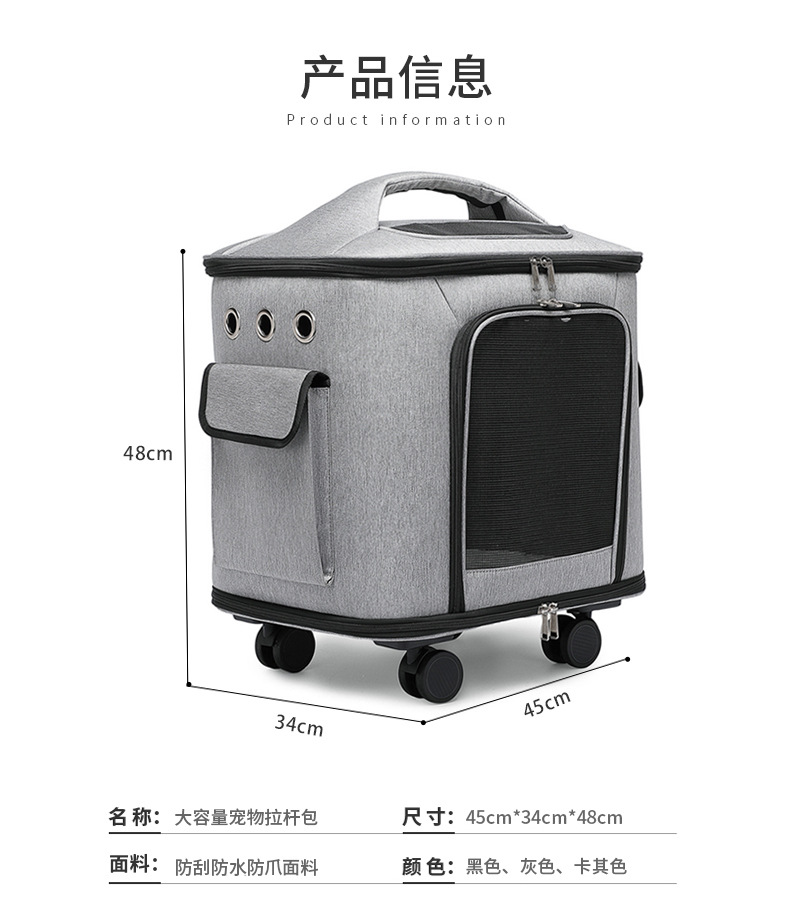 한방 애완 동물 가방 고양이 가방 나들이 가방 휴대용 대용량 음소거 휠 애완 동물 트롤리 케이스 휴대용 대형 고양이와 개 가방스토어 가기