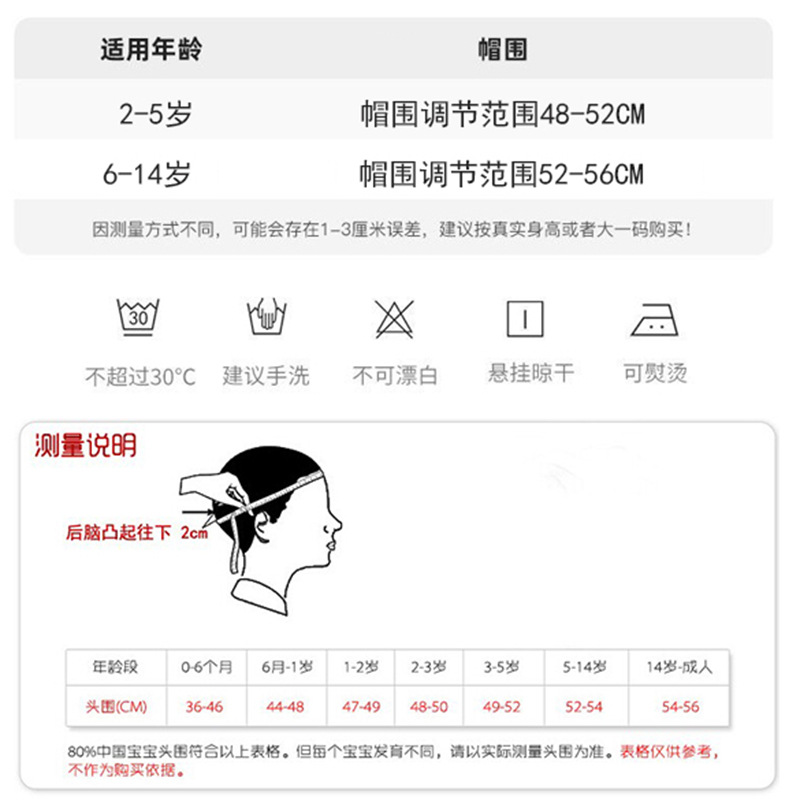 • 작은 48-52 캡 둘레 (권장 2-5 세)