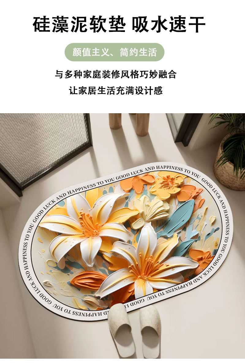 3 차원 3D 욕실 흡수성 매트 부드러운 Diatom 진흙 욕실 문 카펫 가정용 미끄럼 방지 빠른 건조 발 매트