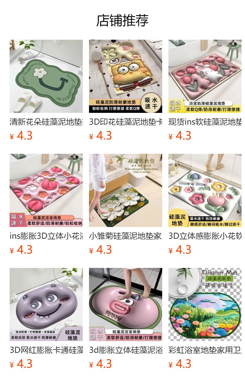 3 차원 3D 욕실 흡수성 매트 부드러운 Diatom 진흙 욕실 문 카펫 가정용 미끄럼 방지 빠른 건조 발 매트스토어 가기