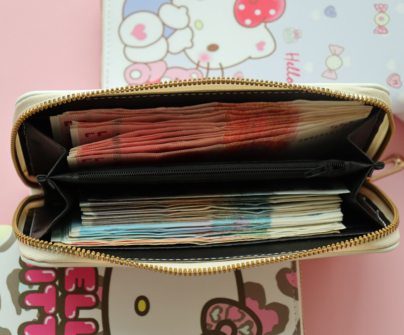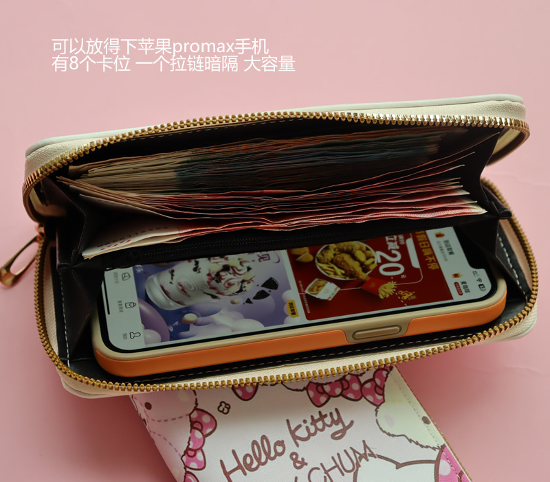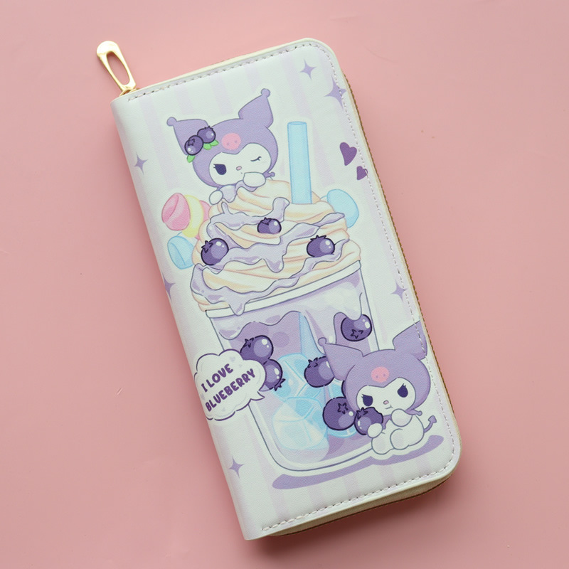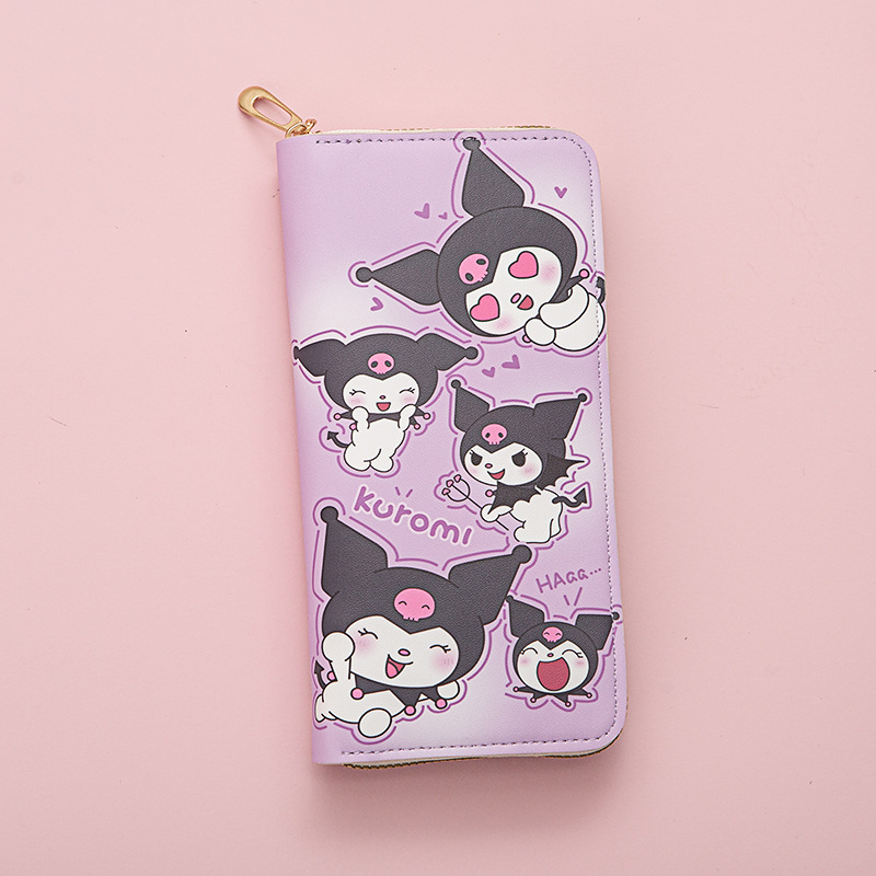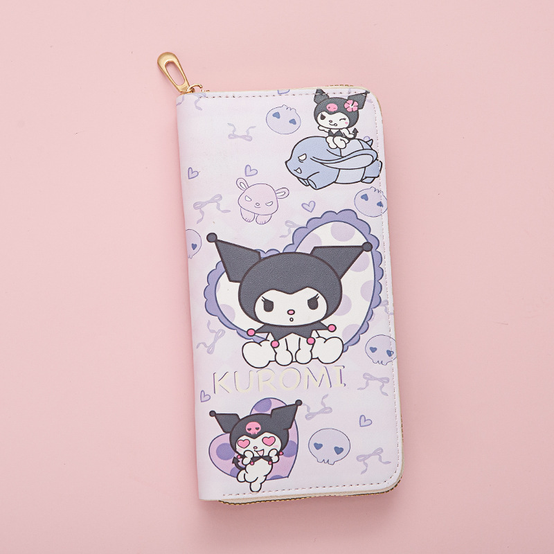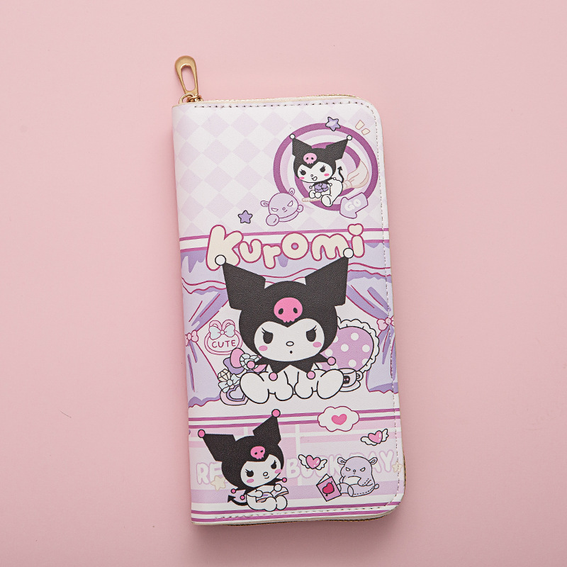 여학생을위한 긴 지갑 만화 Kuromi 신선한 새로운 대용량 휴대 전화 지갑 지퍼 카드 홀더 클러치 백스토어 가기
