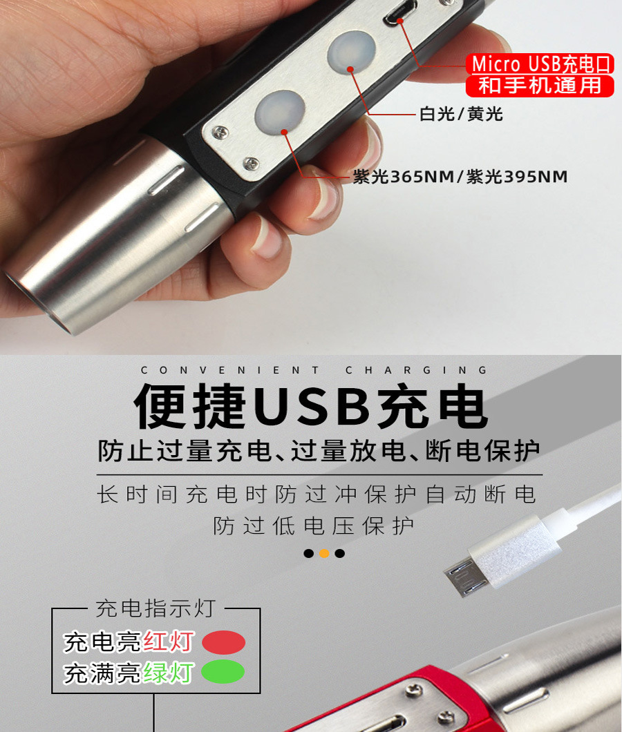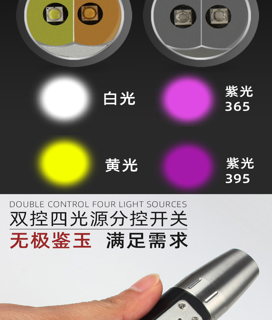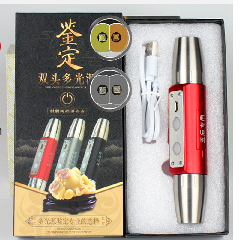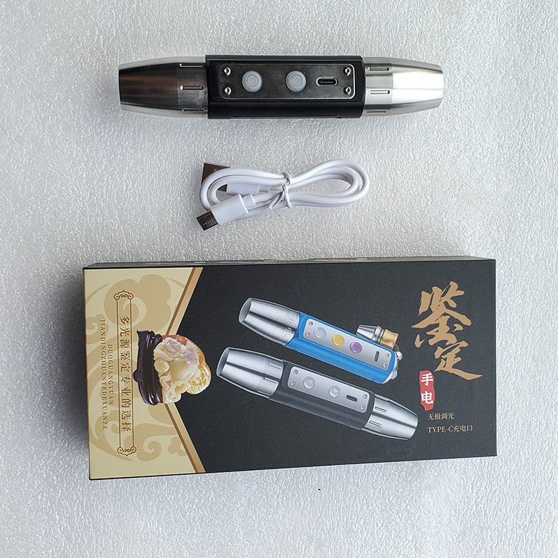 루오멘 하이라이트 6색 LED 보석 감별용 보라색 빛 손전등, 옥, 마노, 비취, 적색광 형광제 손전등
