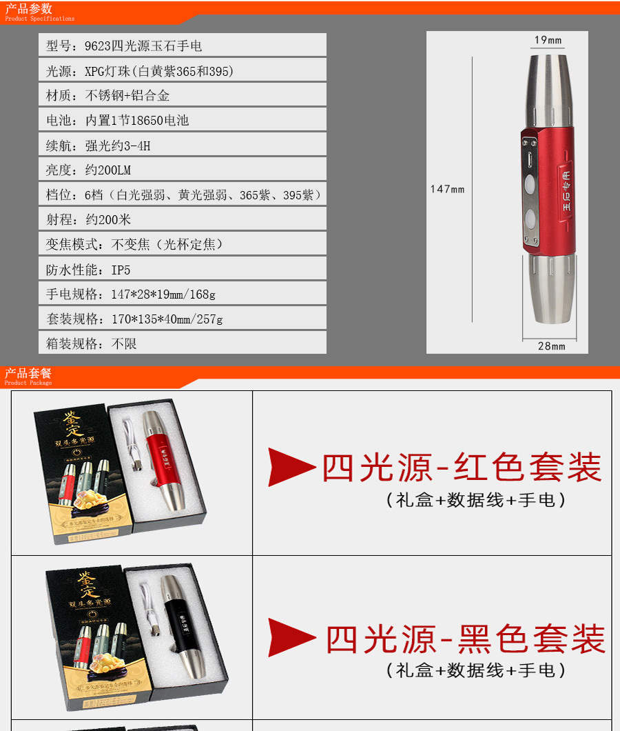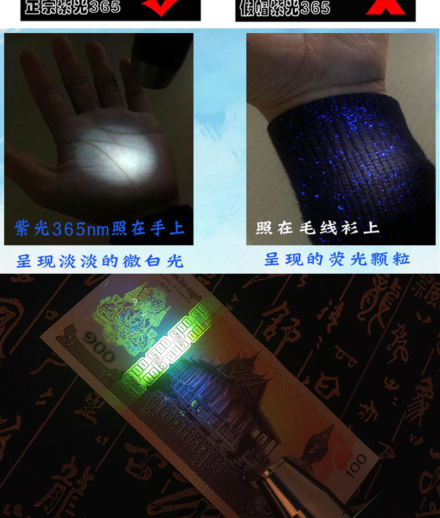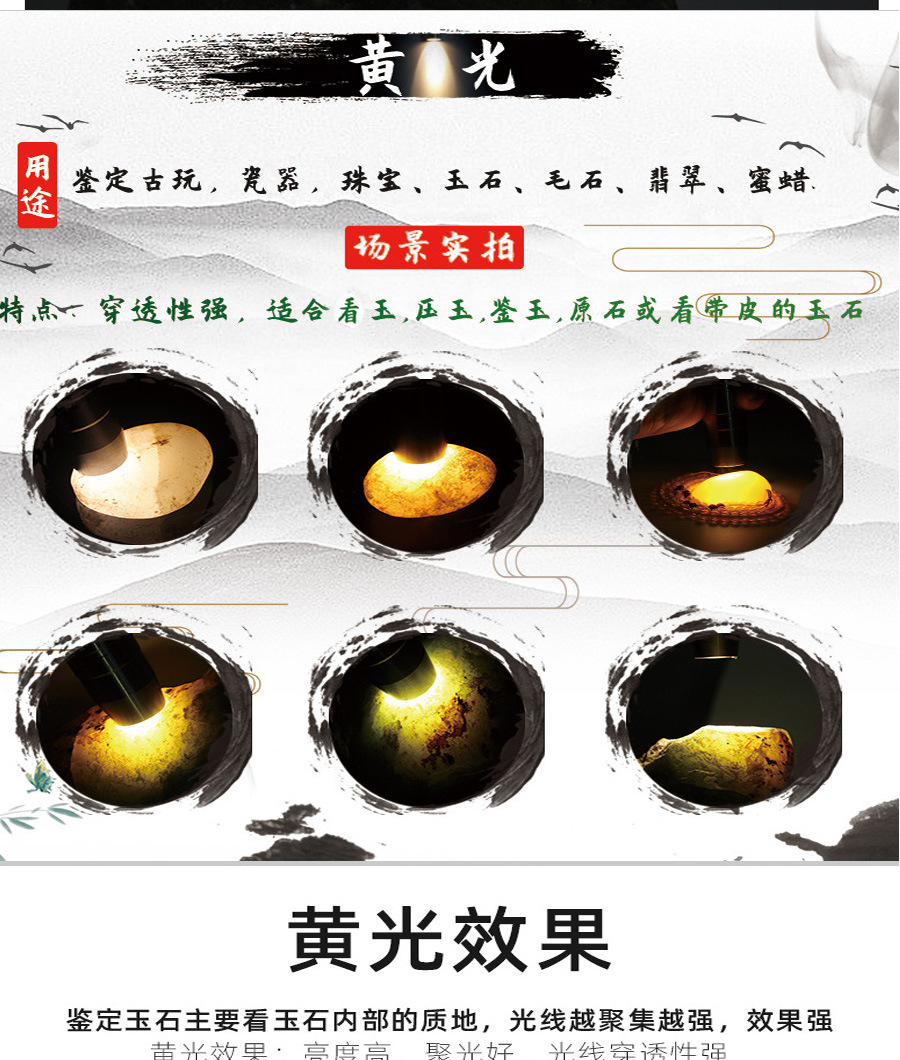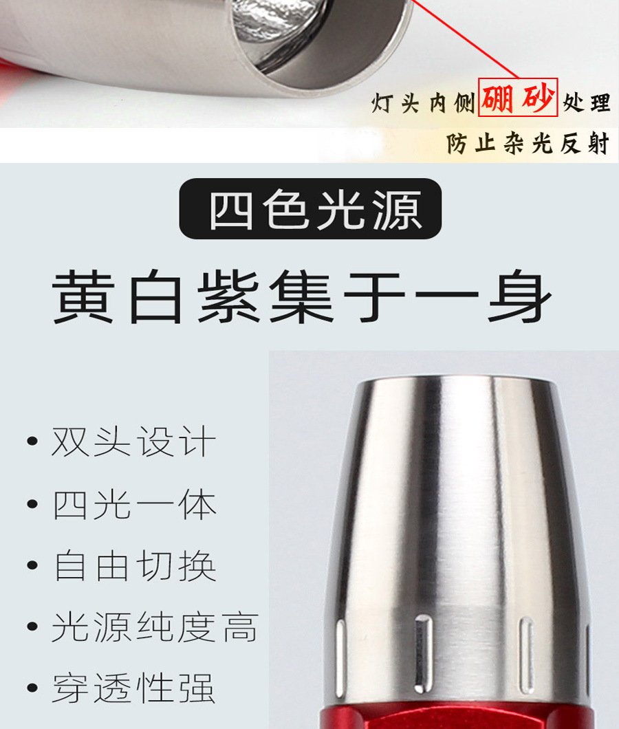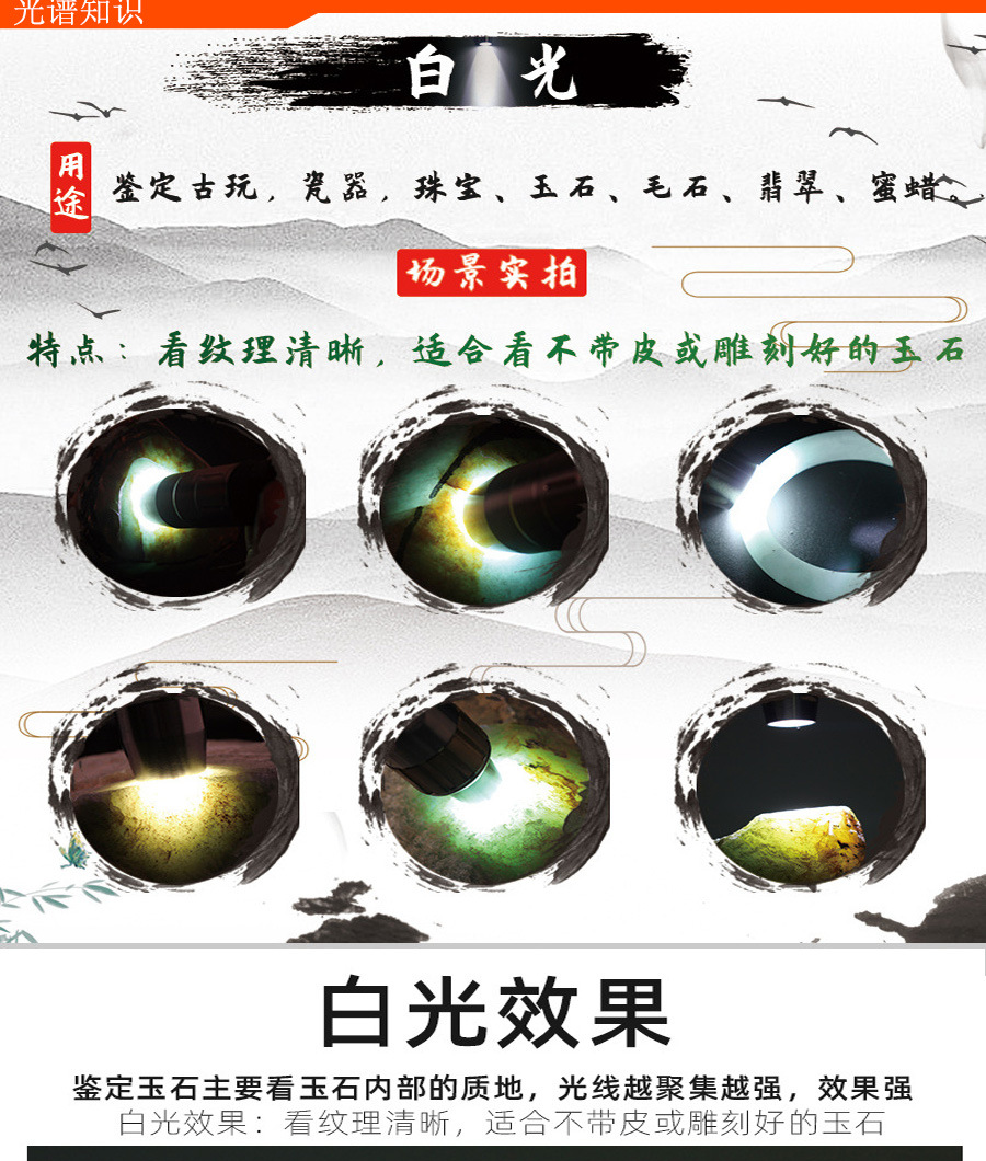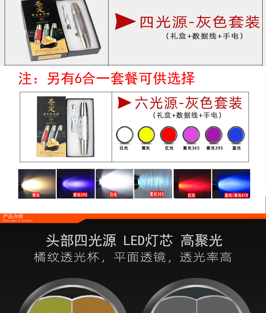 루오멘 하이라이트 6색 LED 보석 감별용 보라색 빛 손전등, 옥, 마노, 비취, 적색광 형광제 손전등스토어 가기