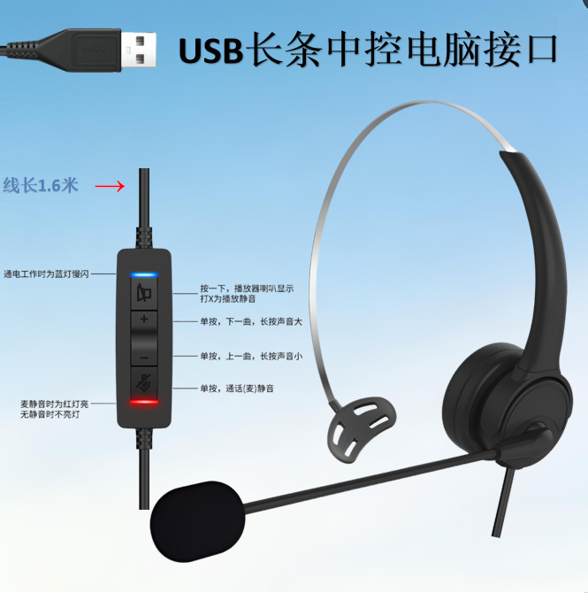 운영자 헤드셋 고객 서비스 휴대 전화 컴퓨터 음악 헤드셋 유선 사무실 비즈니스 USB 케이블 헤드셋 국경스토어 가기