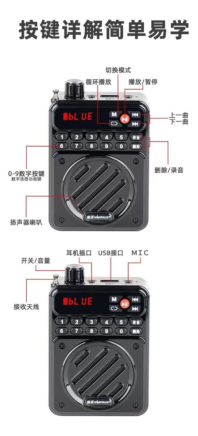 Jin Zheng 819 새로운 포켓 노인 라디오 휴대용 카드 블루투스 스피커 녹음 디지털 노래 삭제스토어 가기