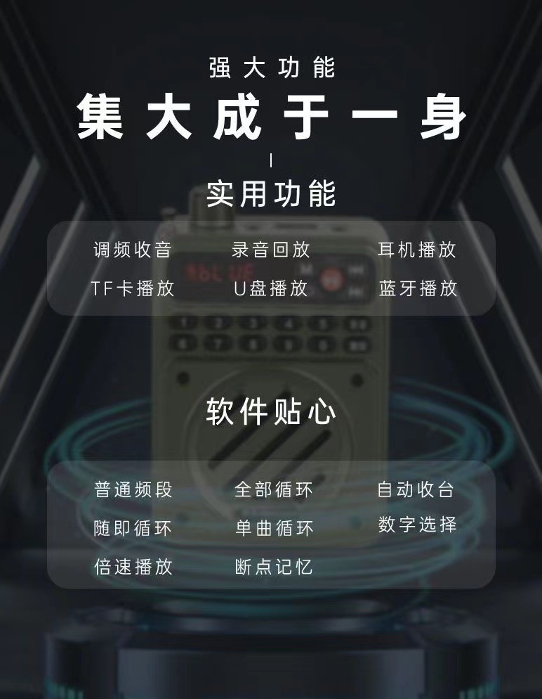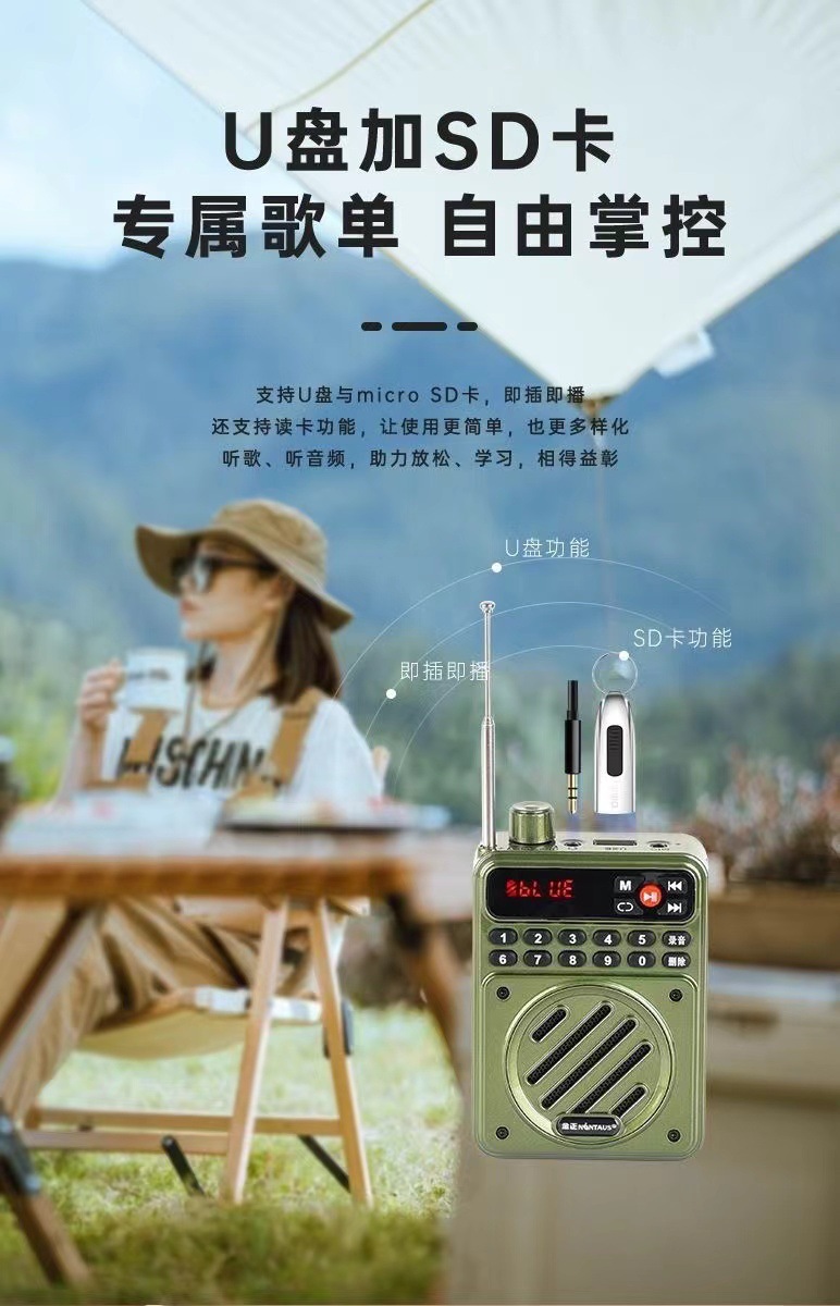 Jin Zheng 819 새로운 포켓 노인 라디오 휴대용 카드 블루투스 스피커 녹음 디지털 노래 삭제
