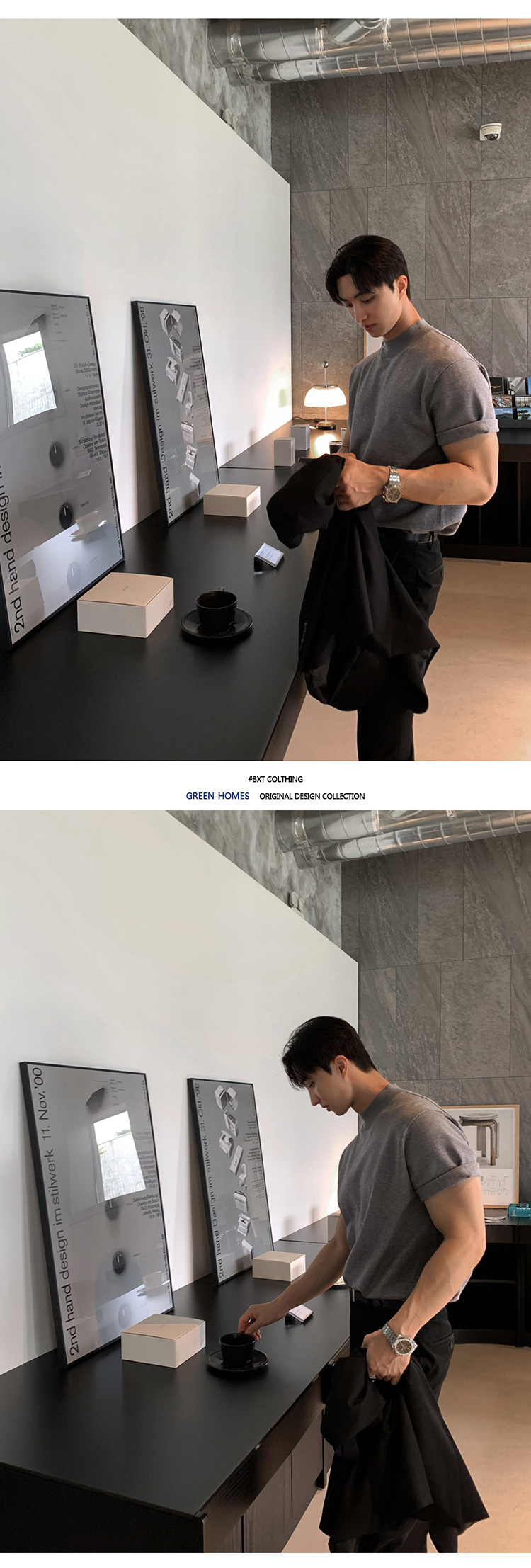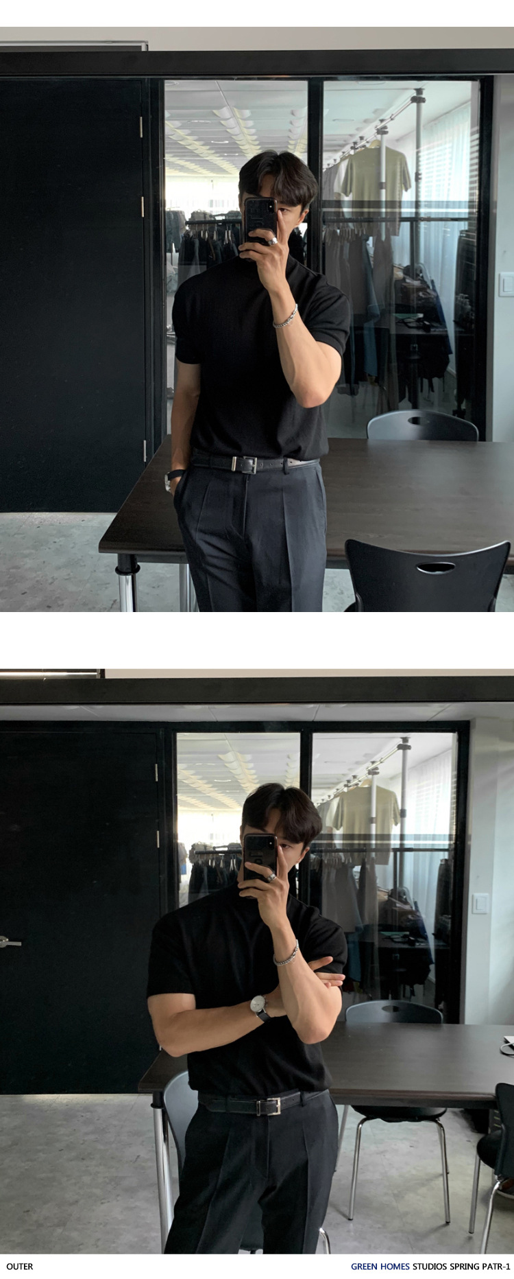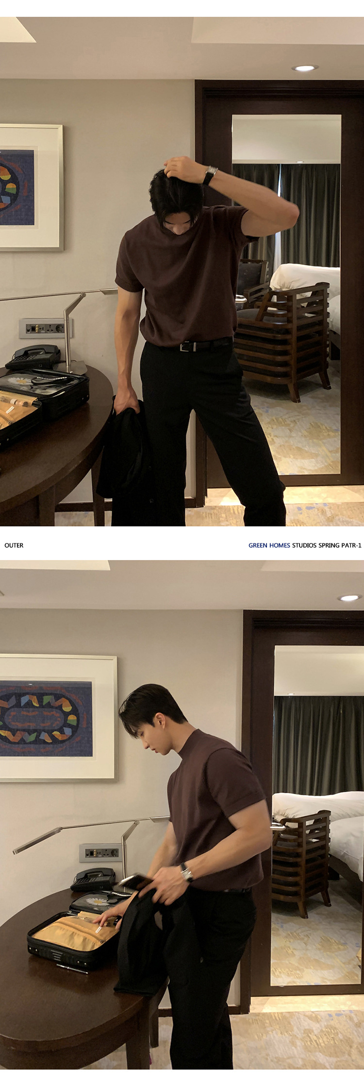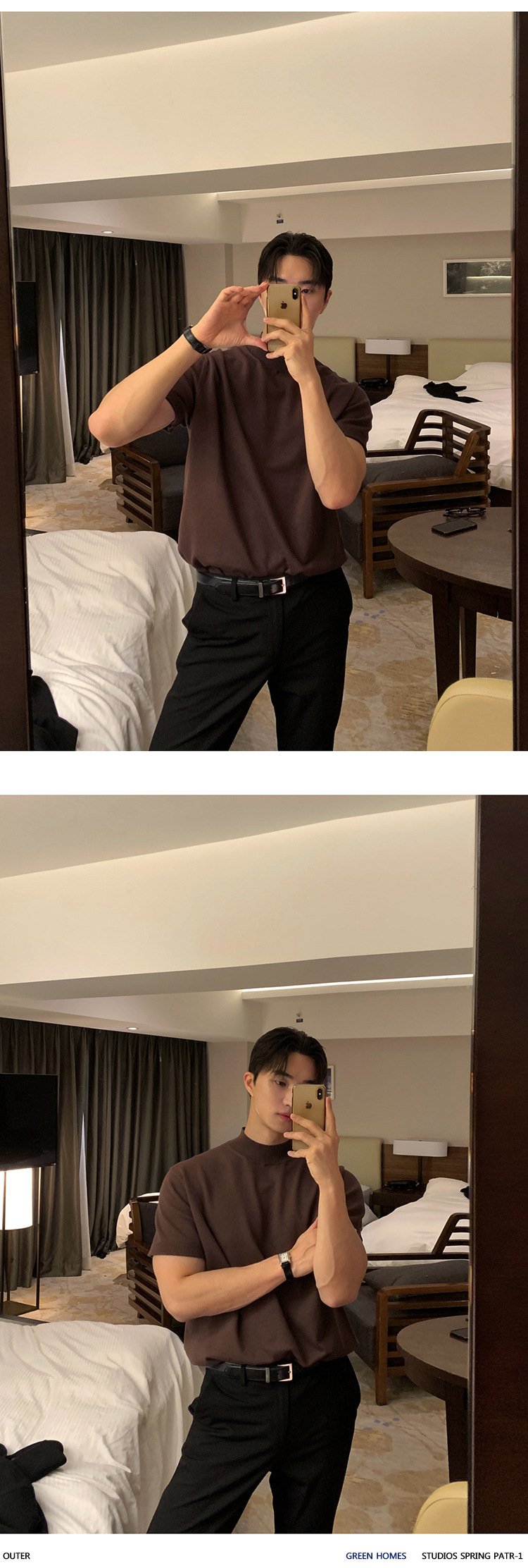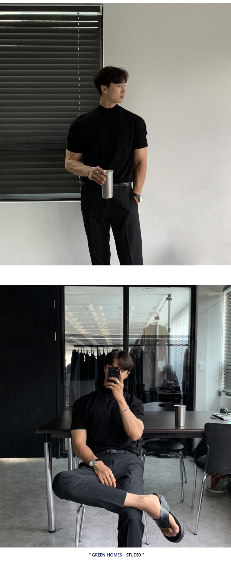 ASCLO 한국식 하이 엔드 스웨터 티셔츠 남성용 캐주얼 느슨한 올 매치 반팔 통기성 라이트 익은 세미 터틀넥 탑스토어 가기