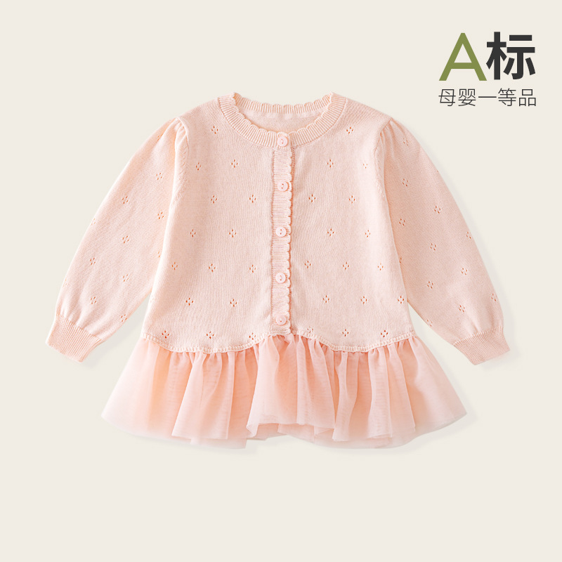 어린이용 스웨터 가디건 수출용 봄 신상 여아용 메쉬 스티치 니트웨어 중소형 어린이용 보온 상의 자켓스토어 가기