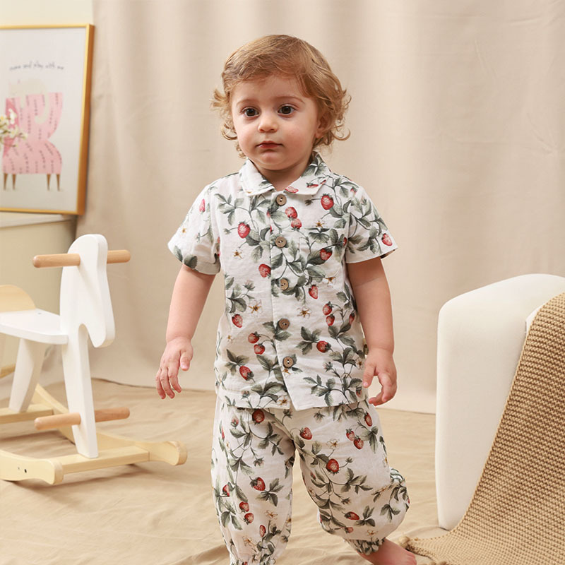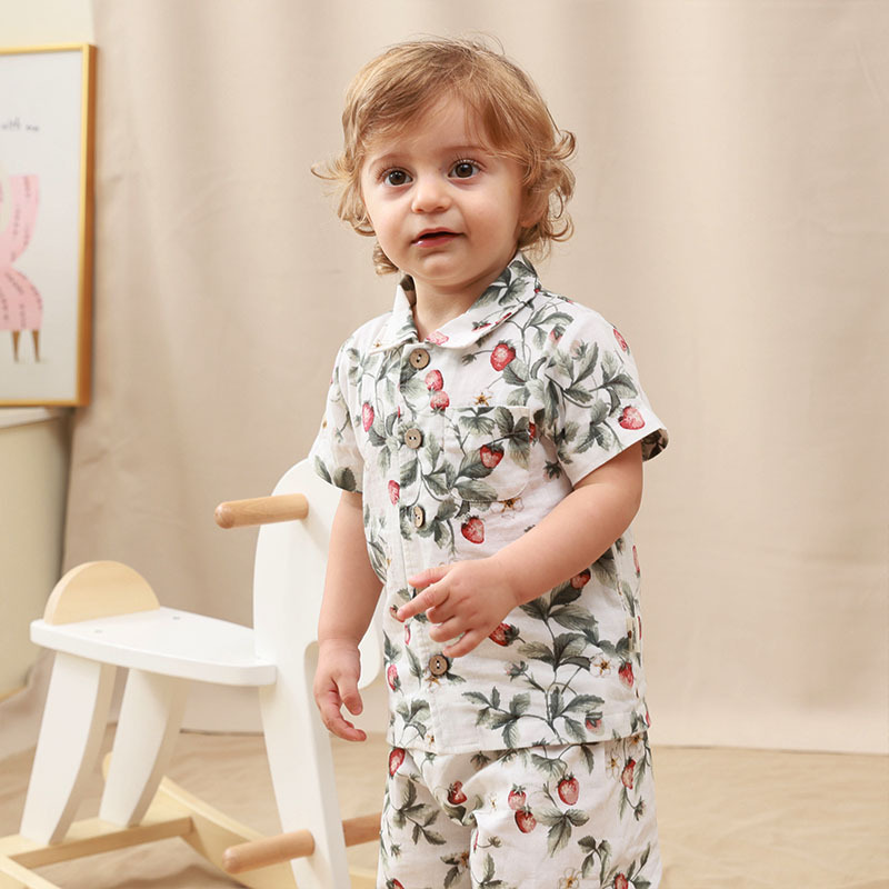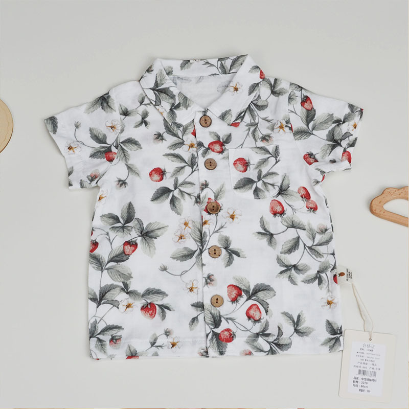 어린이 반팔 셔츠 부드럽고 편안한 옷깃 여름 소년과 소녀 보물 셔츠 추상 꽃 유행 캐주얼 탑