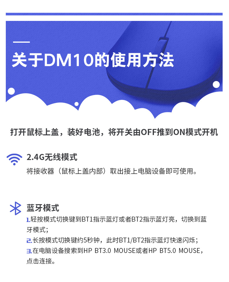 HP DM10 무선 블루투스 듀얼 모드 마우스 오피스 비즈니스 노트북 휴대용 마이크로 어쿠스틱 블루투스 무선 마우스스토어 가기