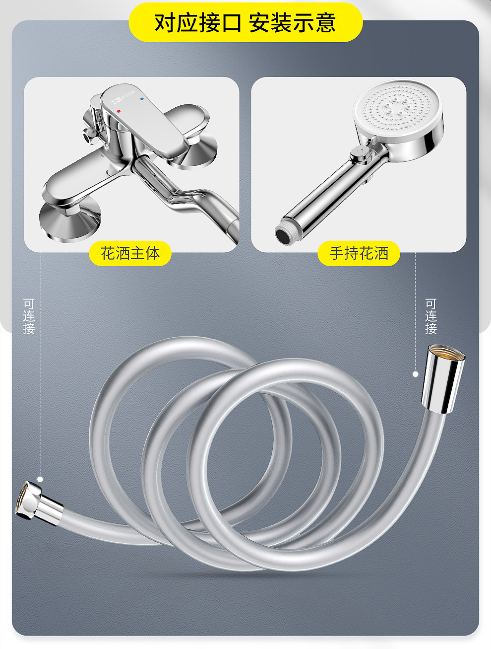 스테인리스 샤워 호스, 샤워기, 레인 샤워기, 수도관, 전기도금 금속 샤워기, 구리 코어 급수관, 고급 구리