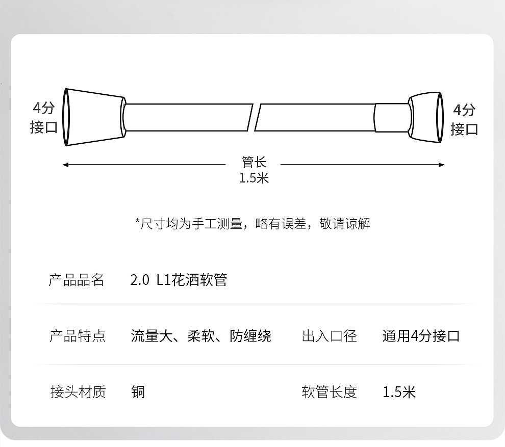 • 1.5m 미세 구리 샤워 호스